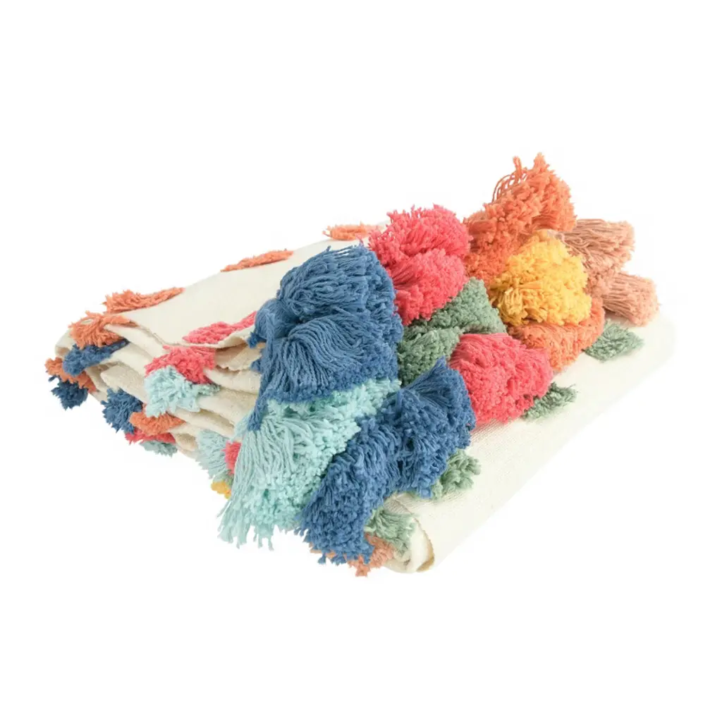 Add some warmth and personality to the space with this woven cotton throw that features a cozy and colorful design. This throw is made of pure cotton, a natural and breathable fabric that provides comfort and durability. The throw features tufted dots and tassels in multiple colors that add a touch of texture and personality to the throw, while the woven texture creates a soft and cuddly feel. The throw is suitable for any space that needs texture and character, such as the living room, bedroom, office, or other area. It can also be an excellent gift for anyone who loves bohemian, eclectic, or global design. This throw measures 60 inches in length and 50 inches in width and is easy to care for. Simply machine wash cold, gentle cycle. Tumble dry low. Do not bleach, iron, or dry clean. Add this woven cotton throw with tufted dots and tassels to the home and enjoy its beauty and functionality.