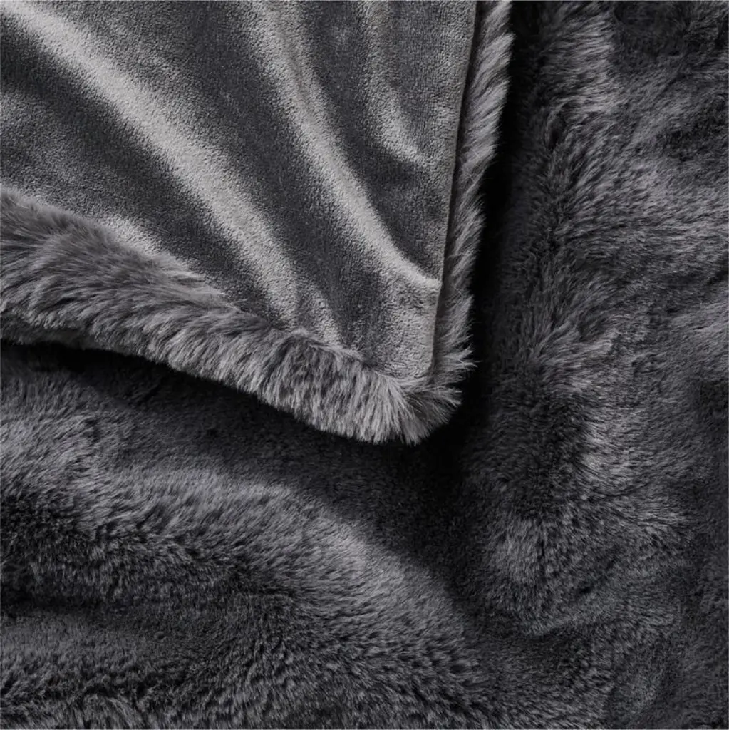 Storm Grey Faux Fur 70"x55" Throw Blanket