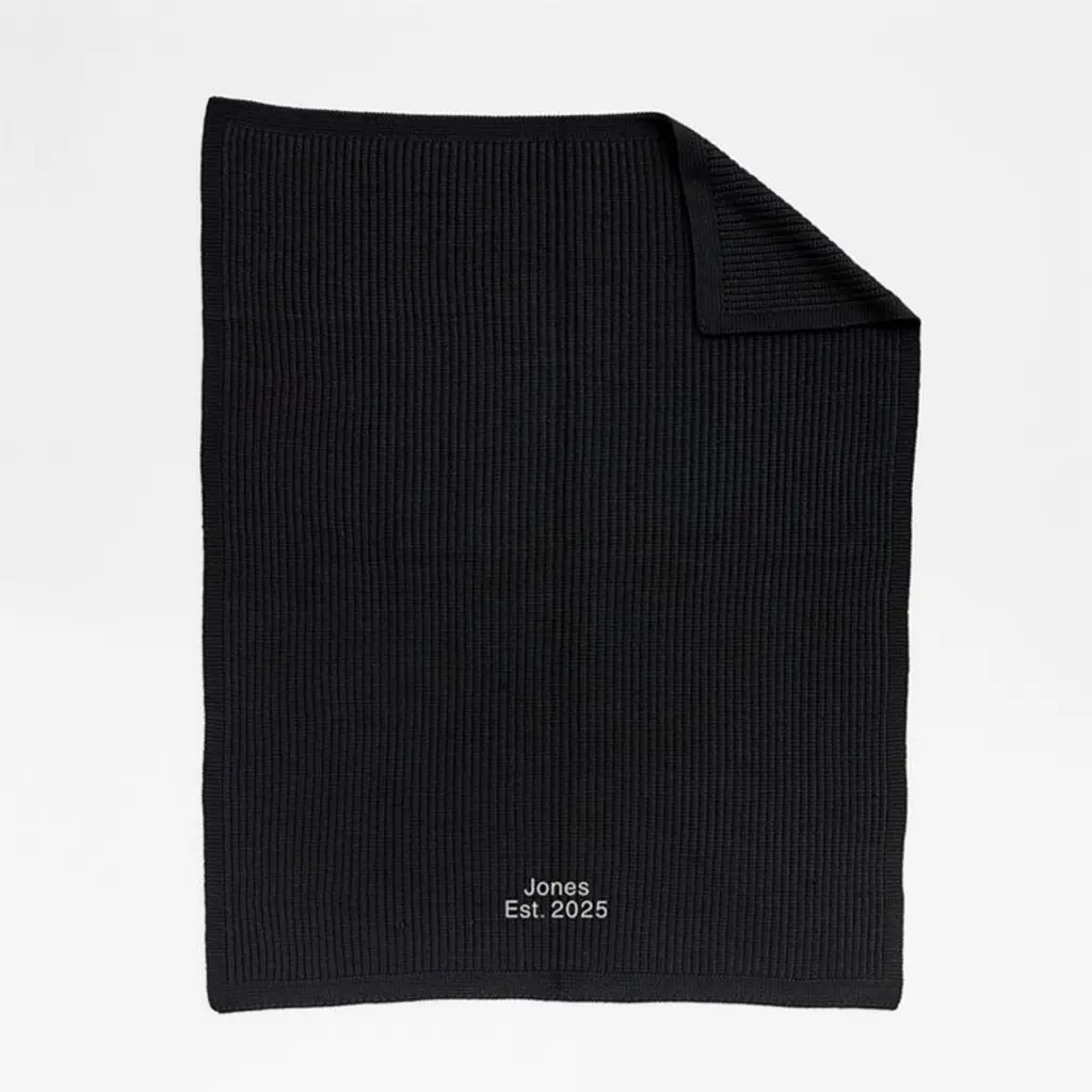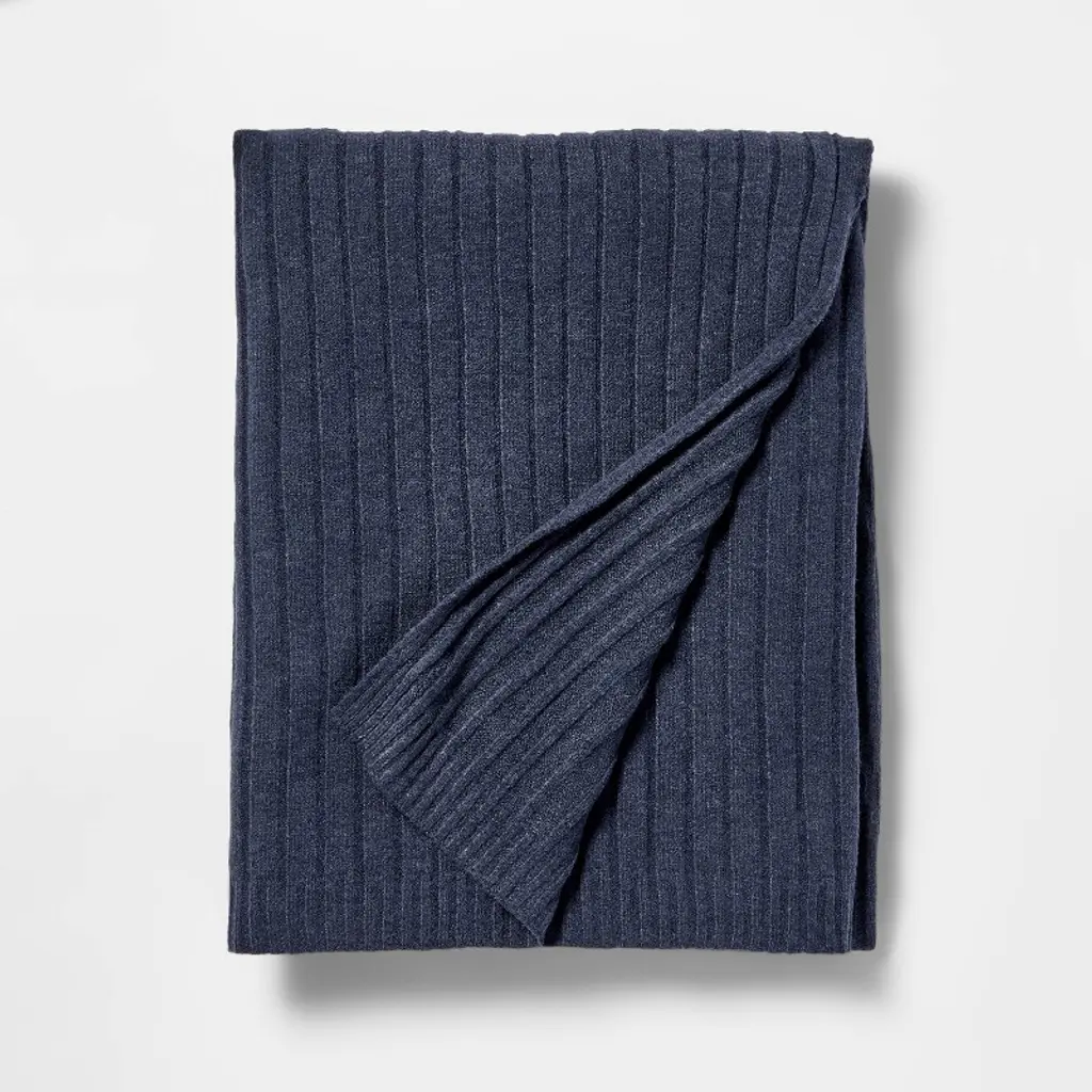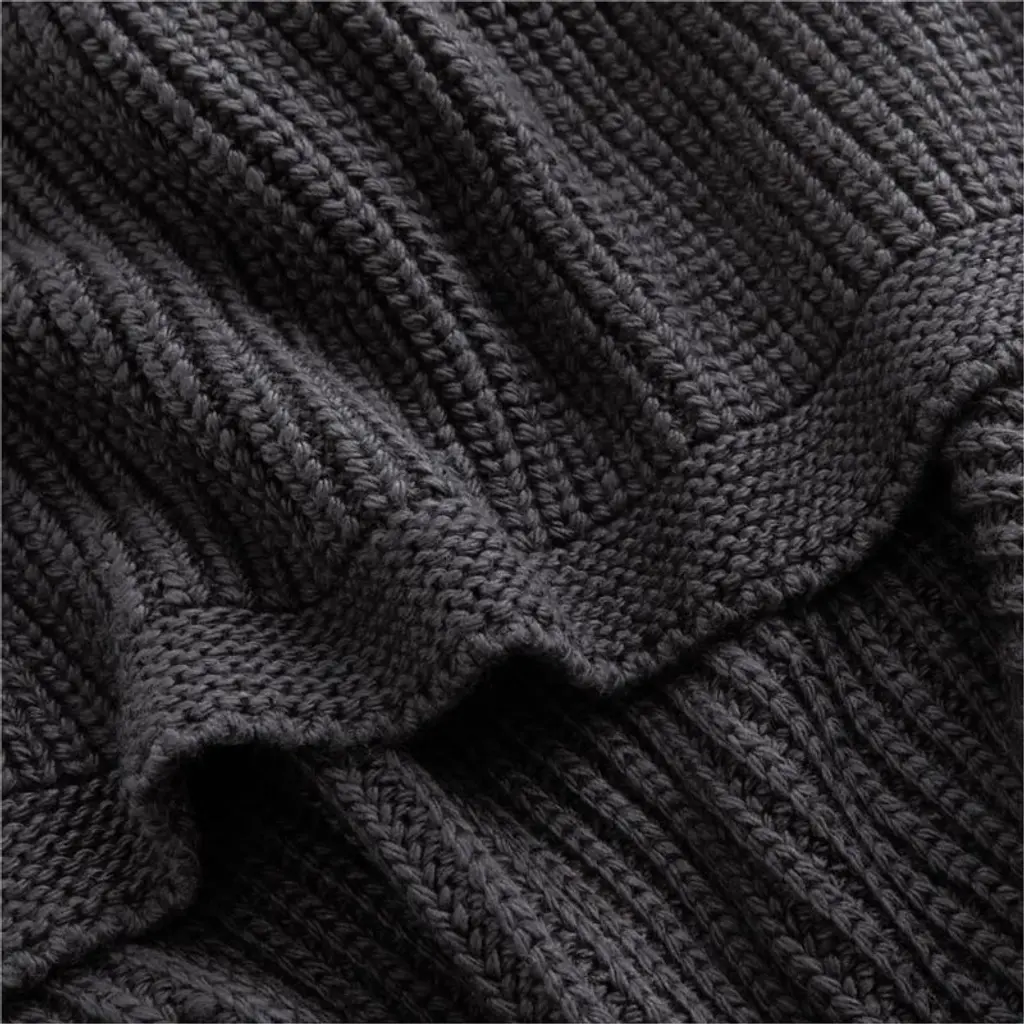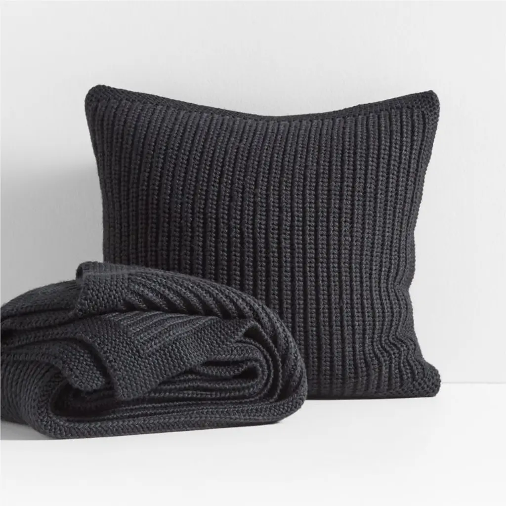 This dark grey throw has the classic-yet-casual look of ribbed fisherman's sweater. Bordered with a contrasting stitch, the knit blanket coordinates with the matching pillow as well as other pillows in our collection. Drape the wool-blend throw on a sofa or foot of the bed for easy access to its snuggly warmth and cozy, comforting weight.
