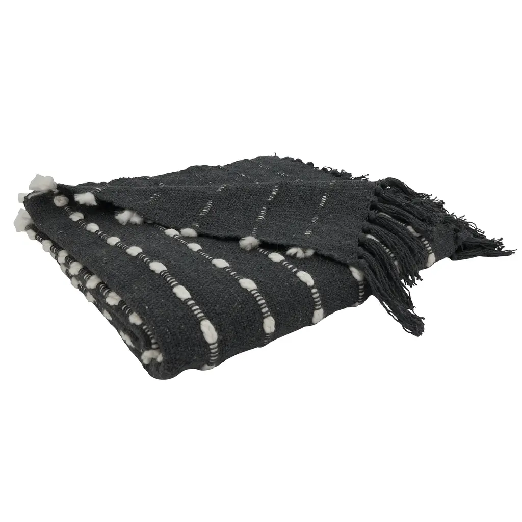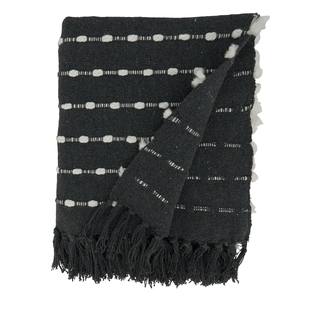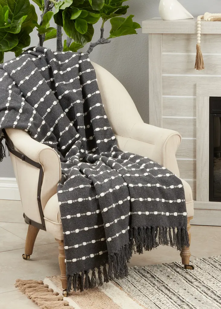 This Striped Design Throw Blanket is both stylish and timeless, featuring a black and white color combination. It's also a very soft and comfortable blanket, made with a quality cotton blend. It brings warmth and texture to your home, and it's easy to pair with a wide range of accent pillows.