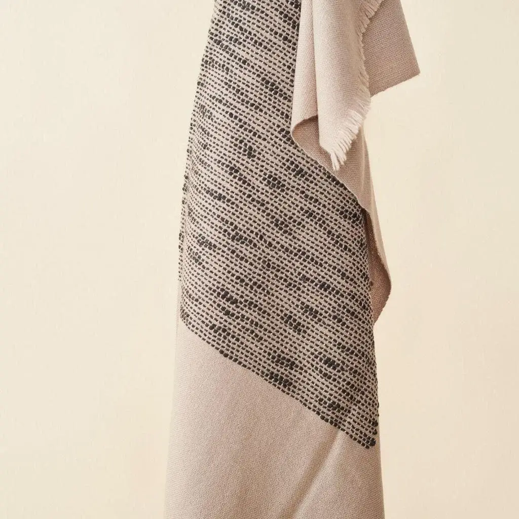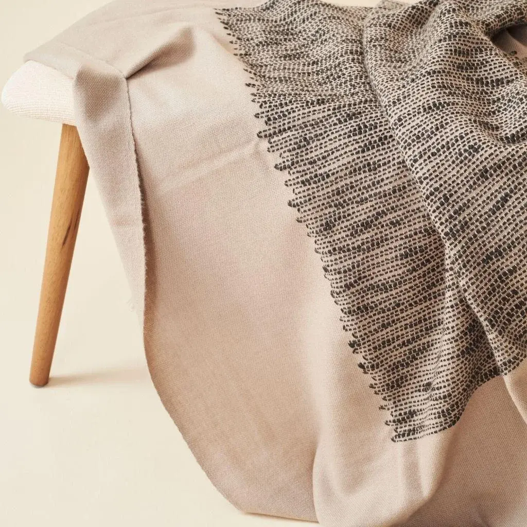 FLO throw / blanket luxuriously combines heritage value & high quality craftsmanship. A perfect gift or personal purchase, FLO is a timeless classic throw / blanket that will complement your personal or living spaces and also support artisan communities ethically. ‚Äã This plush textile's design is a modern take on combining shape and fine detailing of hand embroidery handcrafted meticulously on a handloom textile. Large square in shape, each piece is 100% handmade making it a unique sustainable throw which is both classic and minimal modern in its appeal. Hand embroidered pattern is textured on one side and subtle on the reverse side as well , making this throw or blanket reversible to arrange and use. Size: 53" x 53 " ( 135 cm by 135 cm ) ( large square in size ) Material: 100% soft merino from Australia with hand embroidery. Colors: Soft brown base with black embroidery. Artisan base: Ethically & responsibly handwoven by artisans in Nepal. ‚ÄãWash care: Gently hand wash using gentle detergents., hang dry in cool shaded place or delicately dry clean only. What Makes Your Purchase Sustainable ? Certified Eco Swiss Dyes used. Support employment of women artisans. 100% handmade manufacturing process by artisans. Small batch production ensures higher quality & less wastage. Use only 100% natural + biodegradable responsibly sourced yarns / materials. Each product comes in reusable cotton pouches also made by our artisans.