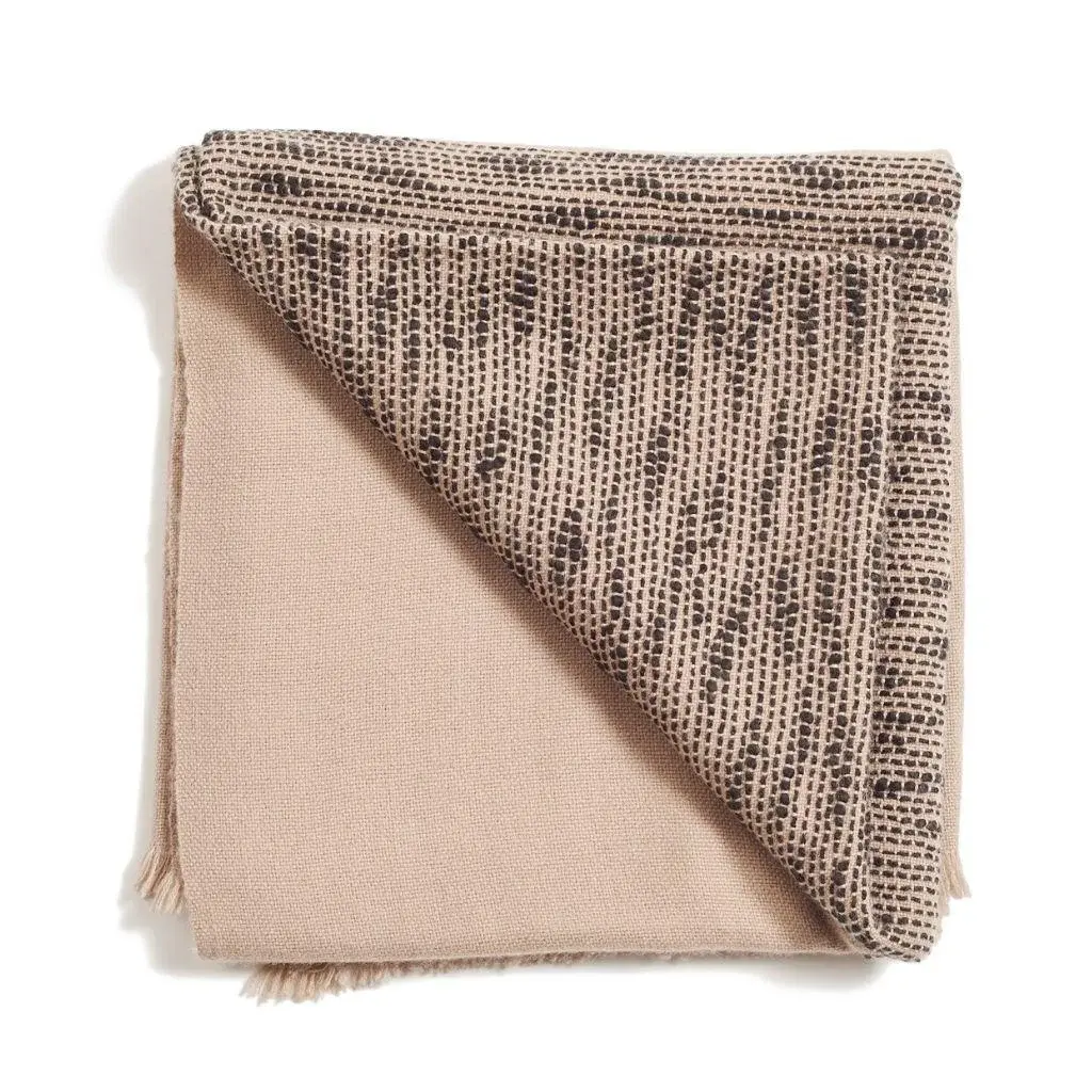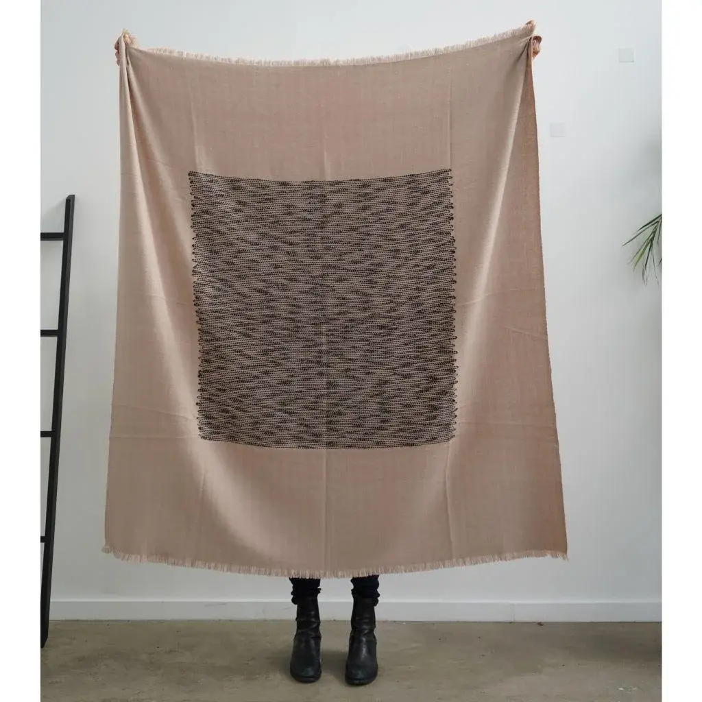FLO throw / blanket luxuriously combines heritage value & high quality craftsmanship. A perfect gift or personal purchase, FLO is a timeless classic throw / blanket that will complement your personal or living spaces and also support artisan communities ethically. ‚Äã This plush textile's design is a modern take on combining shape and fine detailing of hand embroidery handcrafted meticulously on a handloom textile. Large square in shape, each piece is 100% handmade making it a unique sustainable throw which is both classic and minimal modern in its appeal. Hand embroidered pattern is textured on one side and subtle on the reverse side as well , making this throw or blanket reversible to arrange and use. Size: 53" x 53 " ( 135 cm by 135 cm ) ( large square in size ) Material: 100% soft merino from Australia with hand embroidery. Colors: Soft brown base with black embroidery. Artisan base: Ethically & responsibly handwoven by artisans in Nepal. ‚ÄãWash care: Gently hand wash using gentle detergents., hang dry in cool shaded place or delicately dry clean only. What Makes Your Purchase Sustainable ? Certified Eco Swiss Dyes used. Support employment of women artisans. 100% handmade manufacturing process by artisans. Small batch production ensures higher quality & less wastage. Use only 100% natural + biodegradable responsibly sourced yarns / materials. Each product comes in reusable cotton pouches also made by our artisans.
