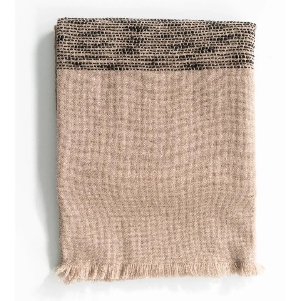 Studio Variously Handwoven & Hand Embroidered Soft Merino Flo Brown Throw