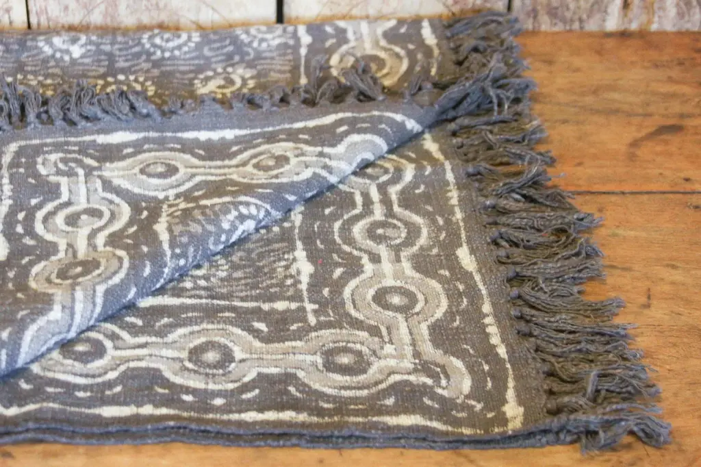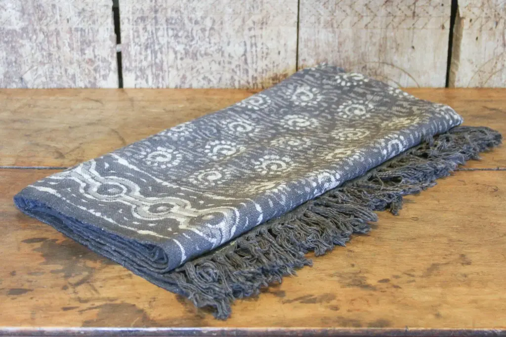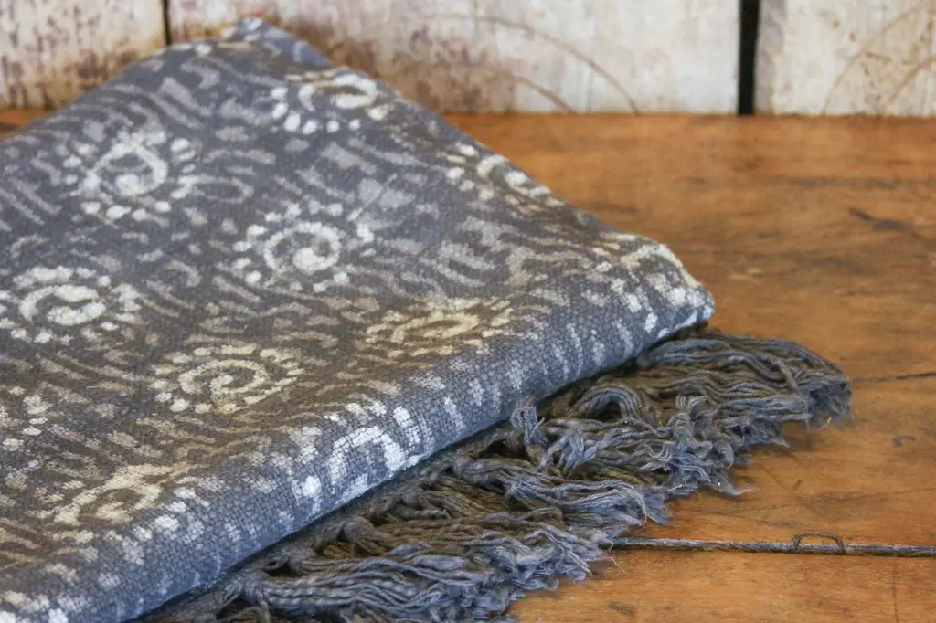 Vibrant and unique, this taupe Batik throw is hand-dyed from natural pigment and displays an off-white floral pattern. **Please bear in mind that colors of products shown may vary slightly from their original color due to monitor display settings or photography studio lighting.