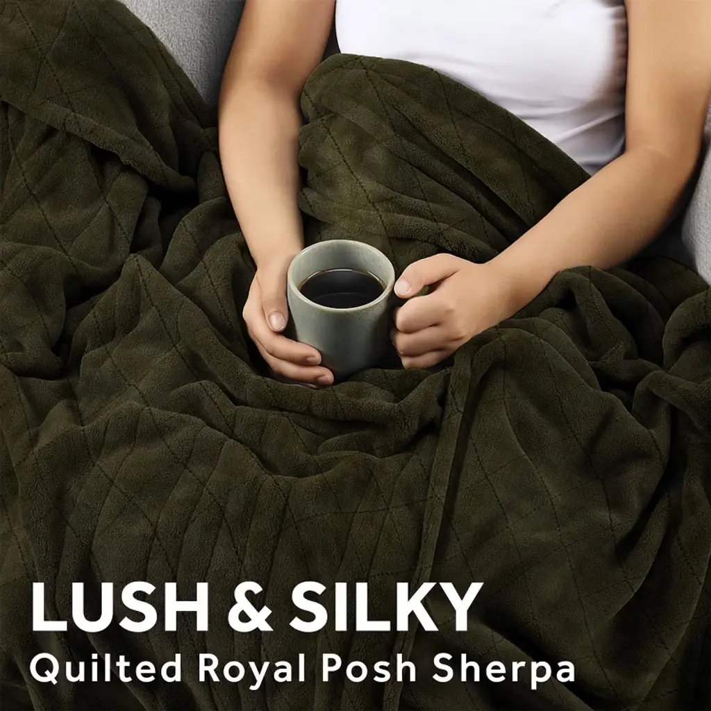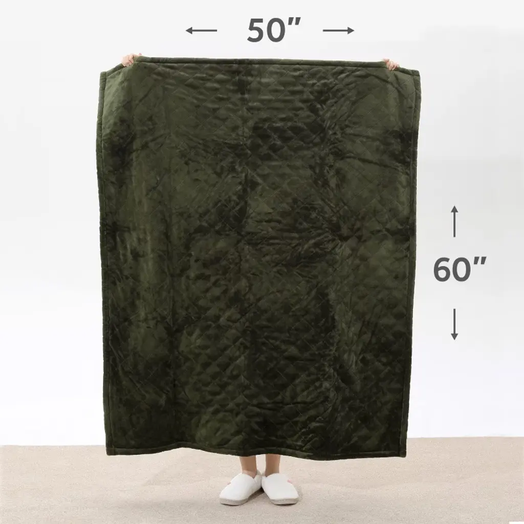 Sunbeam 50" X 60" Quilted Nordic Velvet Reverse Shearling Heated Throw Electric Blanket Olive: Lightweight, Machine Washable