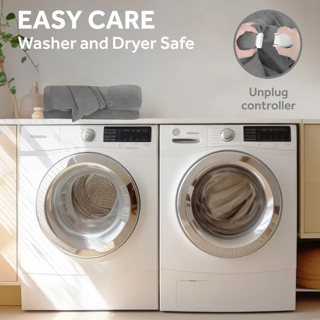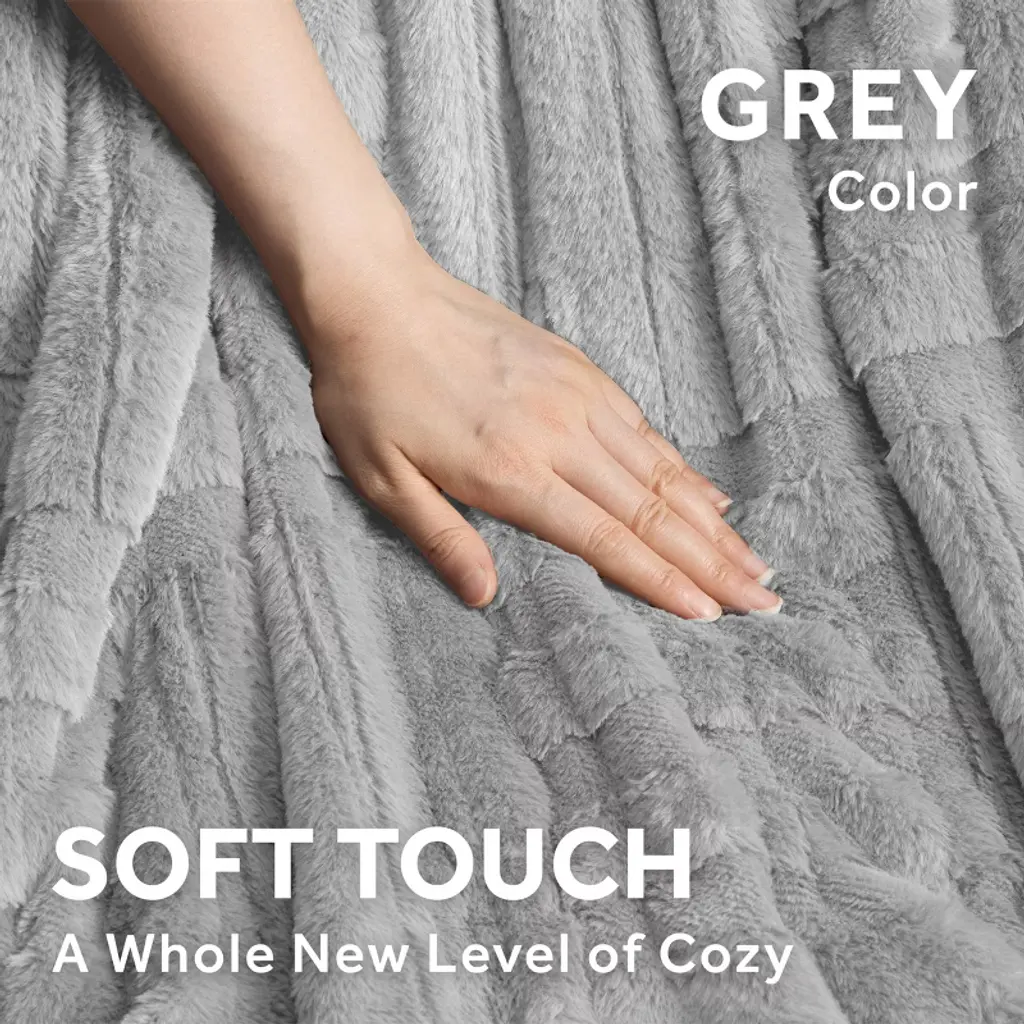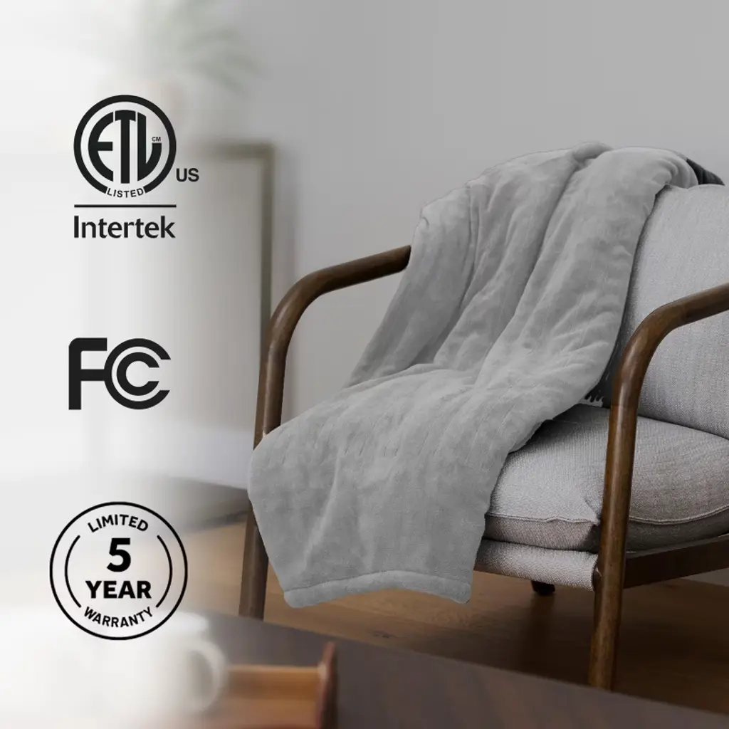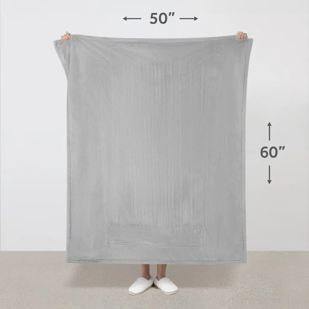 Sunbeam Electric Heated Throw Blanket delivers stylish warmth with its luxurious faux fur fabric and fast-heating technology. Featuring a soft, textured gray finish, this 50" x 60" heated throw adds a sophisticated touch to any room while wrapping you in cozy comfort—perfect for relaxing on the couch, reading in bed, or staying warm while working from home.The easy-to-use controller lets you choose from 3 heat settings to customize your comfort. The blanket heats up quickly and evenly thanks to advanced wire-sensing technology. Built-in safety features include a 3-hour auto shut-off and overheat protection, so you can relax with peace of mind.When it’s time to clean, simply detach the controller and toss the throw into the washing machine—it stays soft and elegant wash after wash.Sunbeam—trusted for over 125 years to bring safe, soothing warmth to your home.
