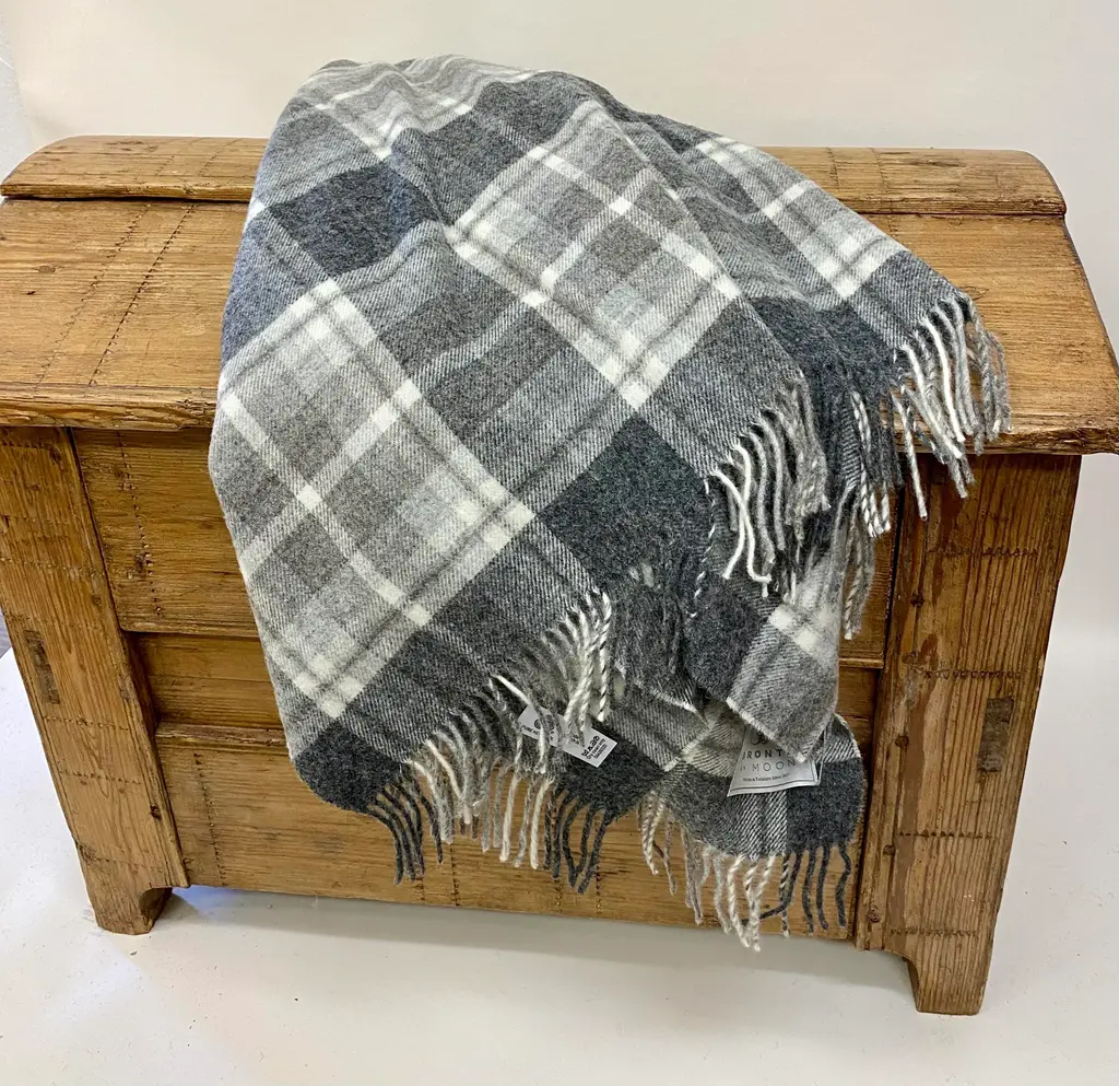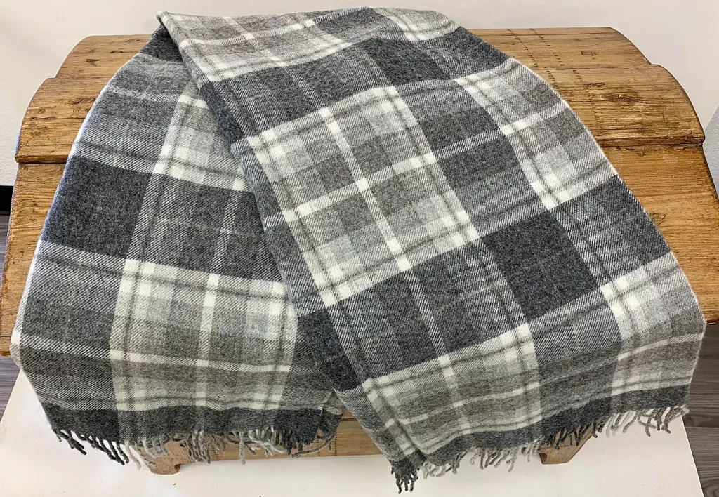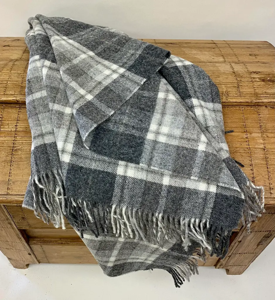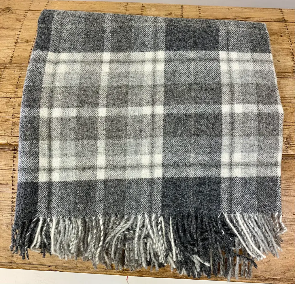 Super Soft Merino Wool Throw In A Masculine Grey On Grey Plaid Pattern. Made In England