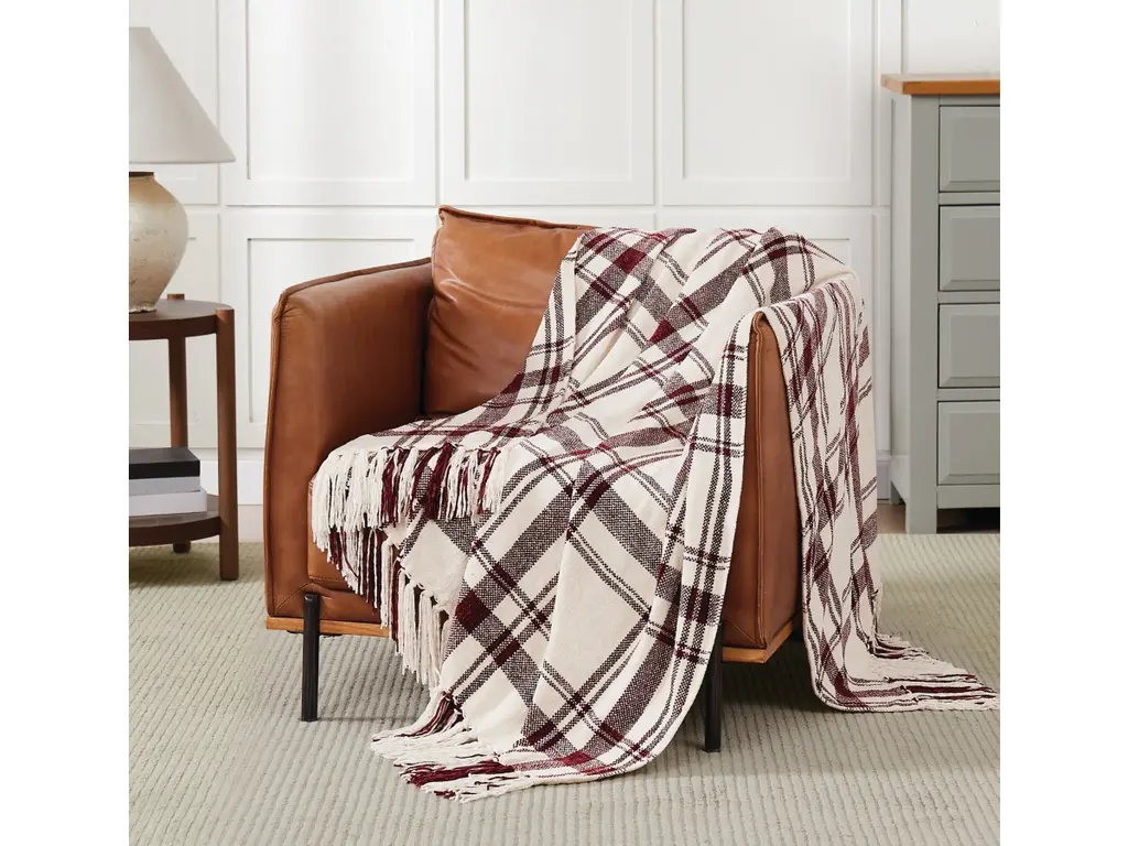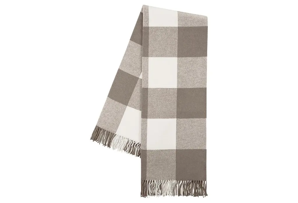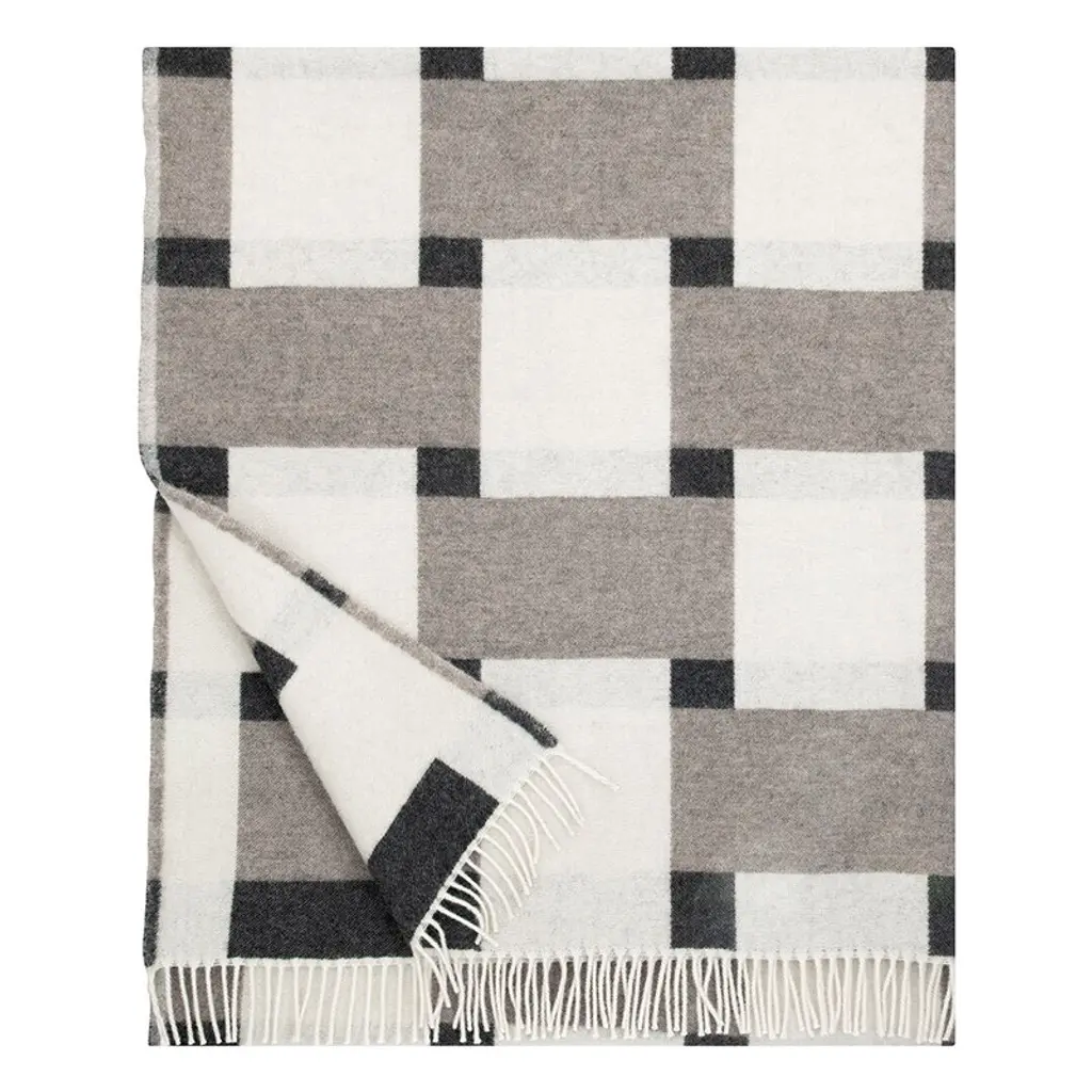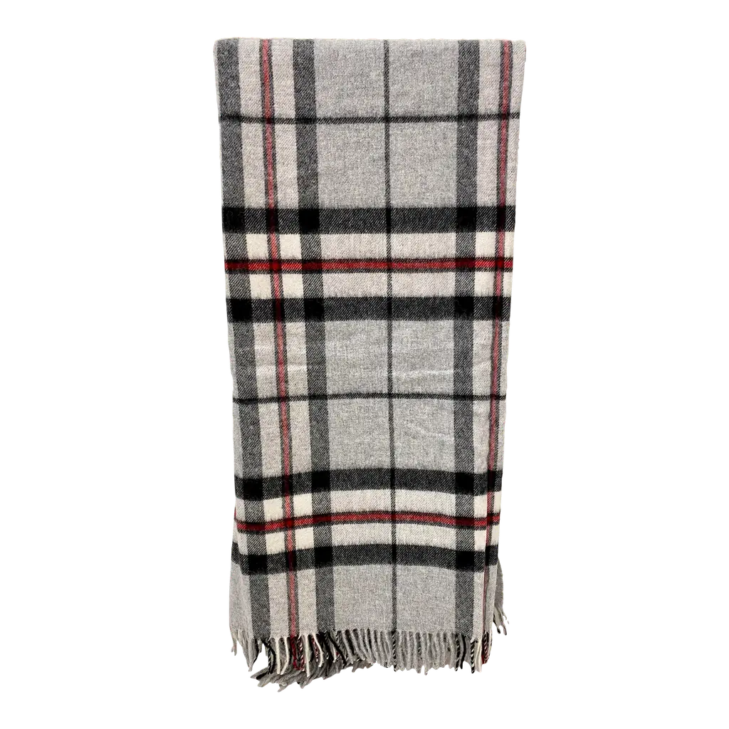 Super Soft Merino Wool Throw In A Masculine Grey On Grey Plaid Pattern. Made In England
