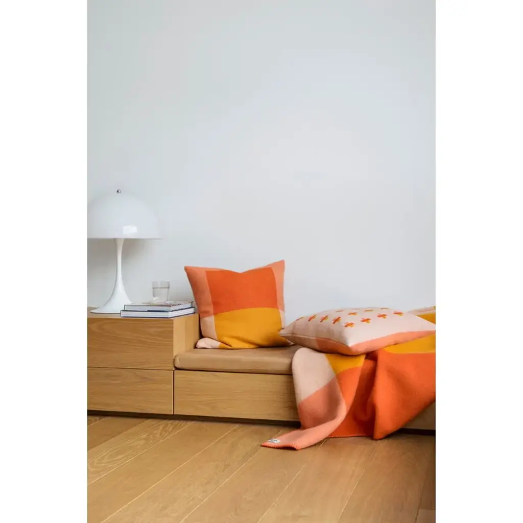 Røros Tweed's Syndin throw charms with playful blocks of contrasting colors, which have been inspired by the mountainous landscapes of the Syndin region in Norway. Designed by Kristine Five Melvær, the Syndin collection offers visual delight with its geometric shapes as well as luxurious softness and comfort. High-quality home textiles by the Norwegian Røros Tweed are made from 100% Norwegian lambswool, shorn from sheep living free in the mountains. The manufacturing process is also kept fully in Norway to maintain high standards, which have been essential to the company's continued success since the 1940s.