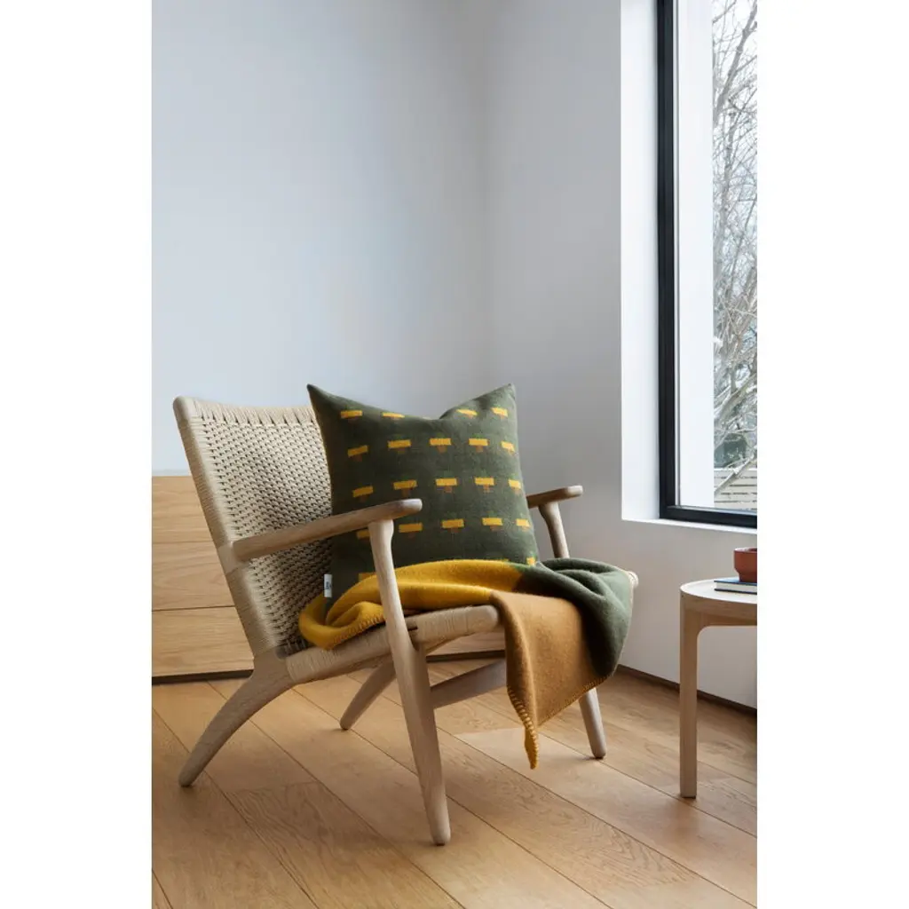 Røros Tweed's Syndin throw charms with playful blocks of contrasting colors, which have been inspired by the mountainous landscapes of the Syndin region in Norway. Designed by Kristine Five Melvær, the Syndin collection offers visual delight with its geometric shapes as well as luxurious softness and comfort. High-quality home textiles by the Norwegian Røros Tweed are made from 100% Norwegian lambswool, shorn from sheep living free in the mountains. The manufacturing process is also kept fully in Norway to maintain high standards, which have been essential to the company's continued success since the 1940s.