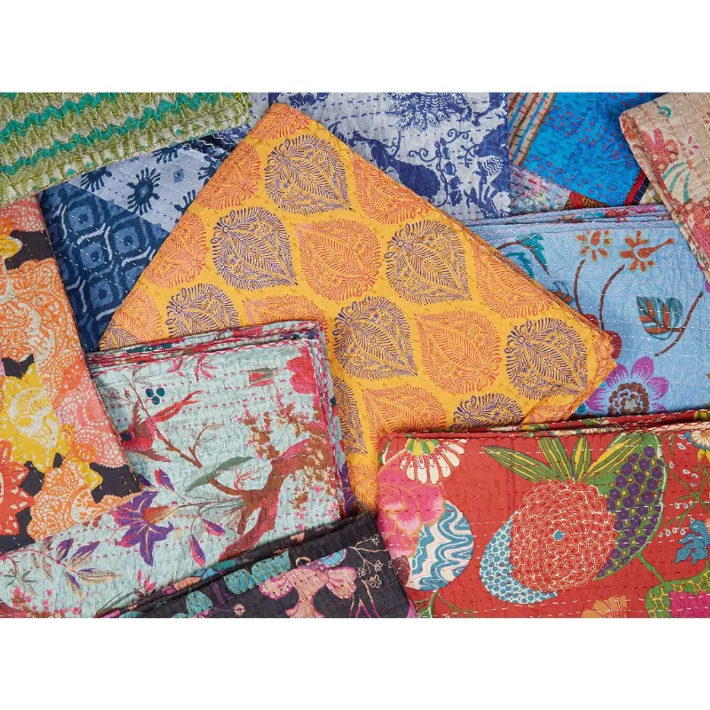 An elegant patchwork of vibrant design with an airy, lightweight feel, the Kantha series is visibly unique. Kantha embroidery is a time-honored technique practiced for centuries by skilled Indian artisans. Each piece is hand-crafted from several layers of cotton or silk held together by a running “Kantha” stitch. The luxurious materials, rich colors, vintage artistry and one-of-a-kind beauty will elevate your decor and infuse individuality to any space. Features: 100% Cotton / Hand crafted / Technique: Quilted / Size: 50x70 / Country of origin: India / Can be used in a variety of ways: as a blanket, table cover, wall hanging, tapestry, beach cover and more / Hand wash cold water / Some variance in size and color may occur due to the one-of-a-kind vintage nature of this product100% CottonHand craftedTechnique: QuiltedCan be used in a variety of ways: as a blanket, table cover, wall hanging, tapestry, beach cover and moreHand wash cold water / Lay flat to drySome variance in size and color may occur due to the one-of-a-kind vintage nature of this productCountry of origin: India
