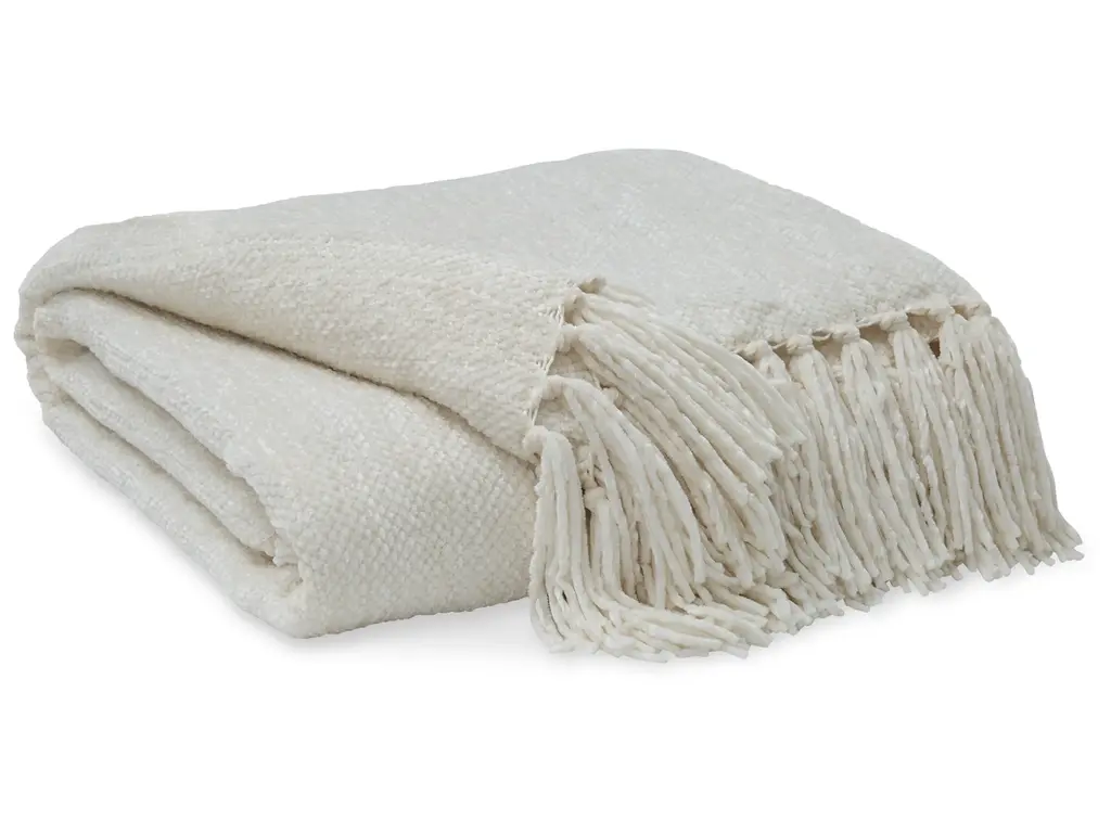 A lovely layer to cozy up with, the Tamish cream throw blanket also makes a stylish statement. Whether draped over the arm of a sofa or folded at the foot of a bed, the woven texture and knotted fringe give it a homespun look that's relaxed and inviting.
