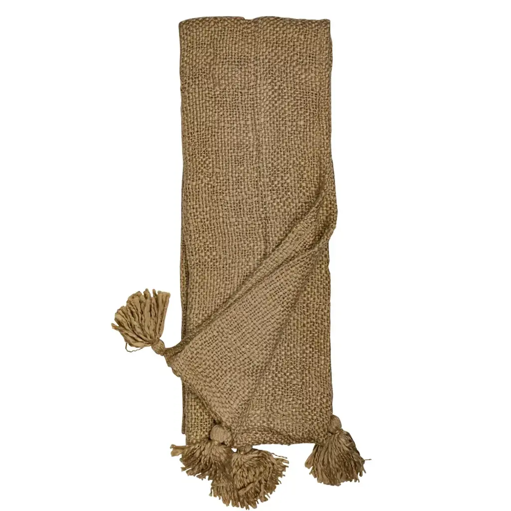 Tan Corner Tassel Hand Woven Acrylic Throw - Foreside Home & Garden