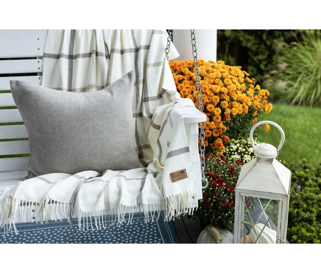 Perfect for tossing over a sofa or folding at the foot of the bed, this cashmere-soft cotton-blend throw is crafted with a herringbone weave and tattersall-plaid pattern. Plush fringe completes this cozy design.