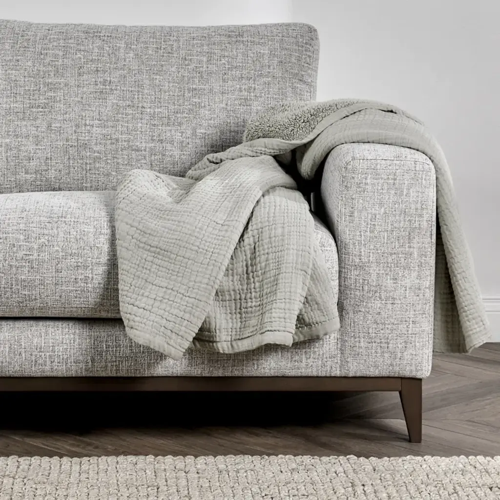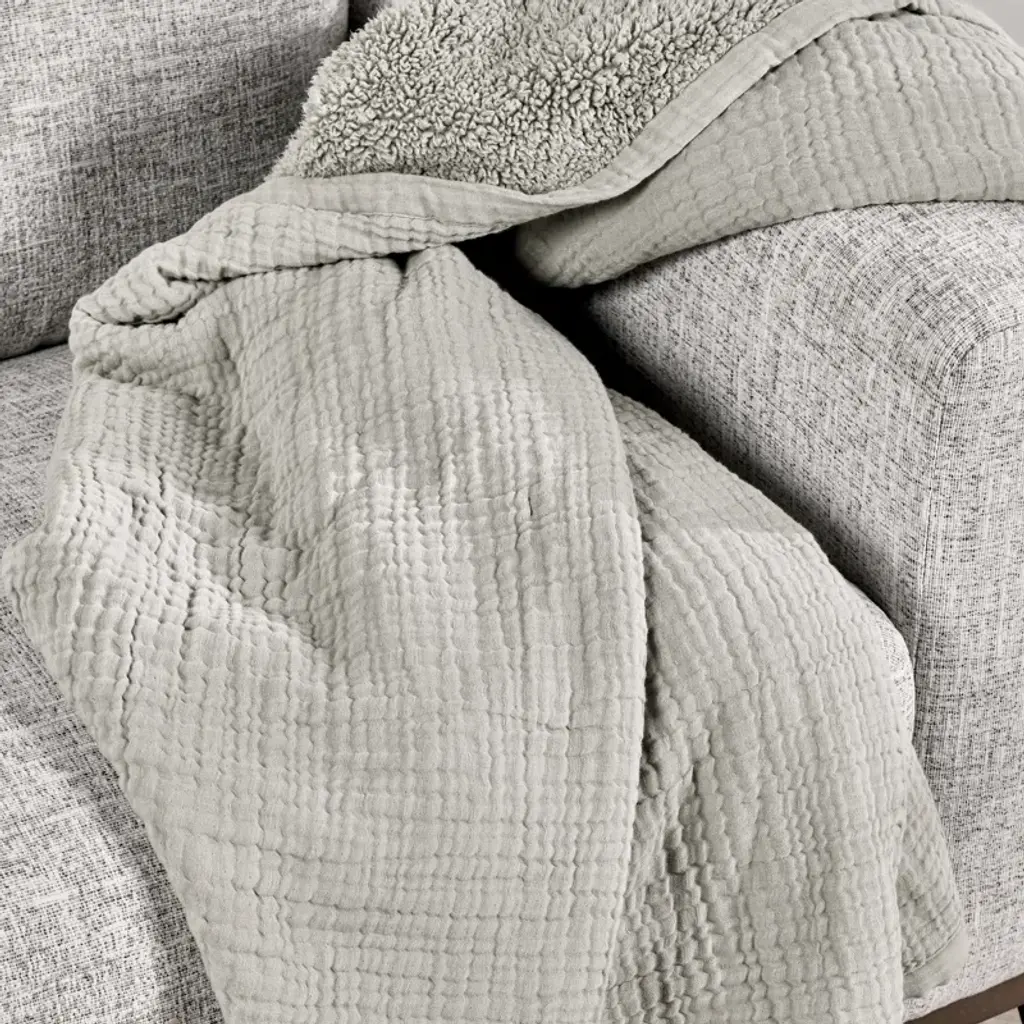 Three layers of a soft cotton linen blend give this throw a sumptuous, lofty feel while a fluffy sherpa backing adds premium coziness.
