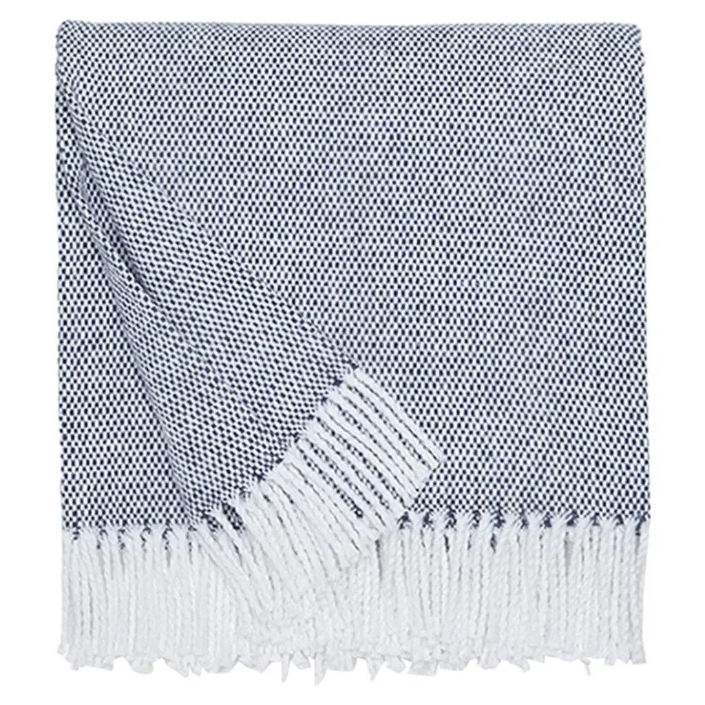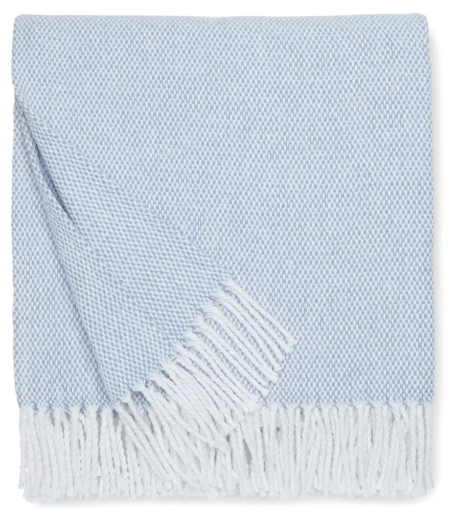 This lightweight throw is crafted of luxuriously soft brushed cotton in a classic basketweave pattern with coordinating twisted fringe.