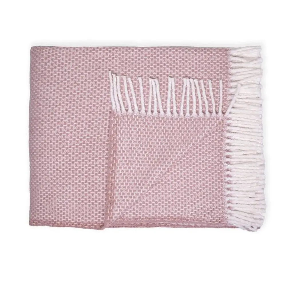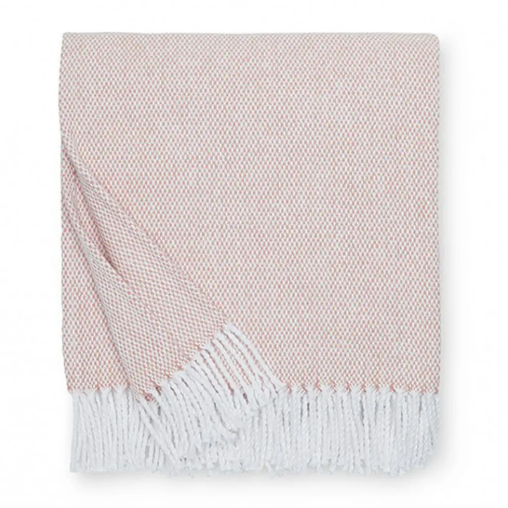 This lightweight throw is crafted of luxuriously soft brushed cotton in a classic basketweave pattern with coordinating twisted fringe.