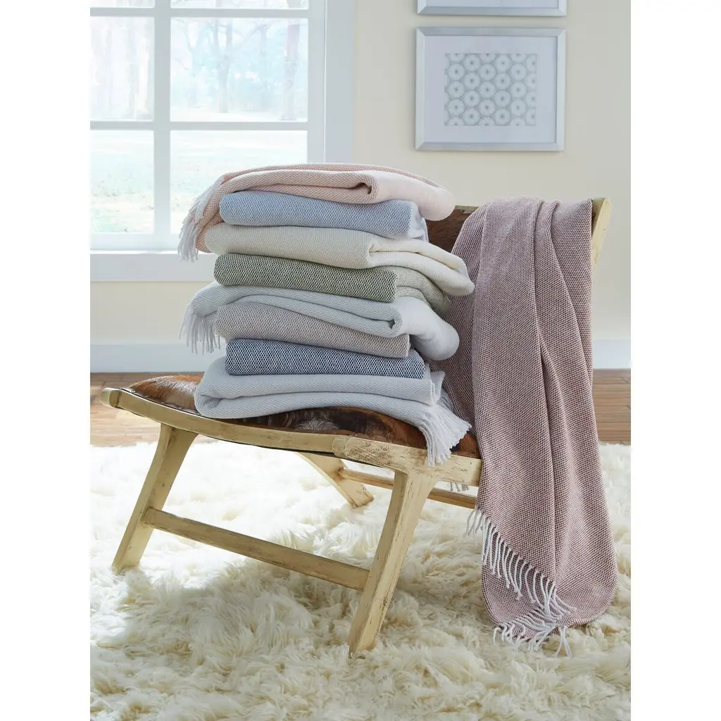 This lightweight throw is crafted of luxuriously soft brushed cotton in a classic basketweave pattern with coordinating twisted fringe.