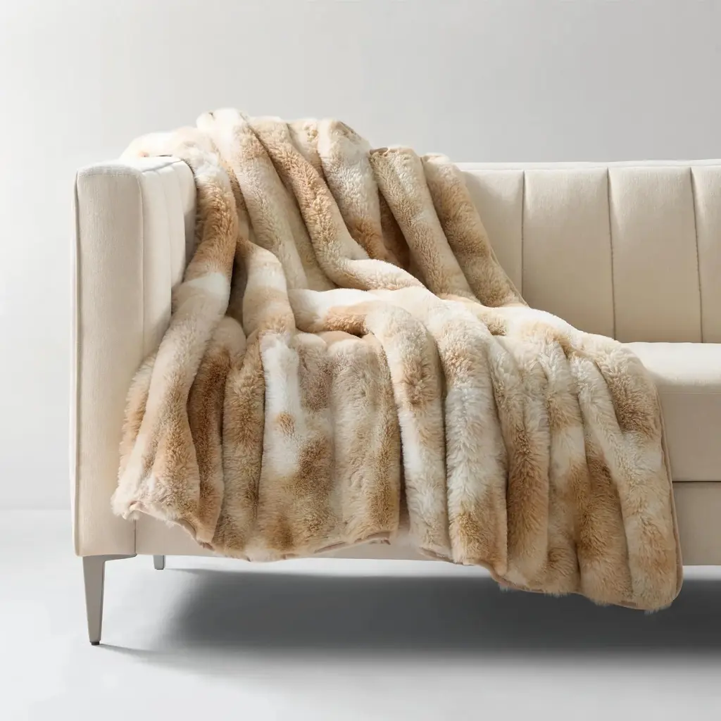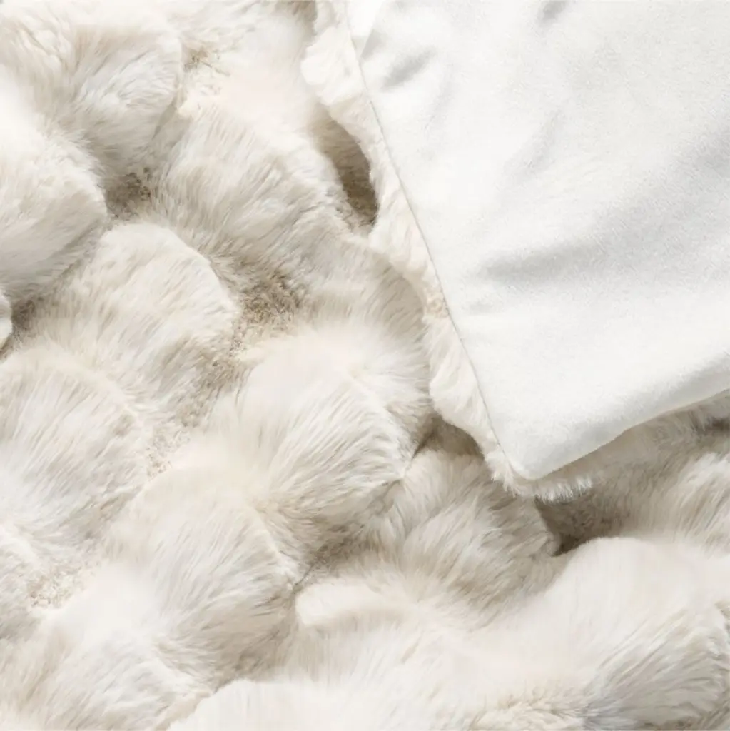 Textured Faux Fur 70"x55" Arctic Ivory Throw Blanket