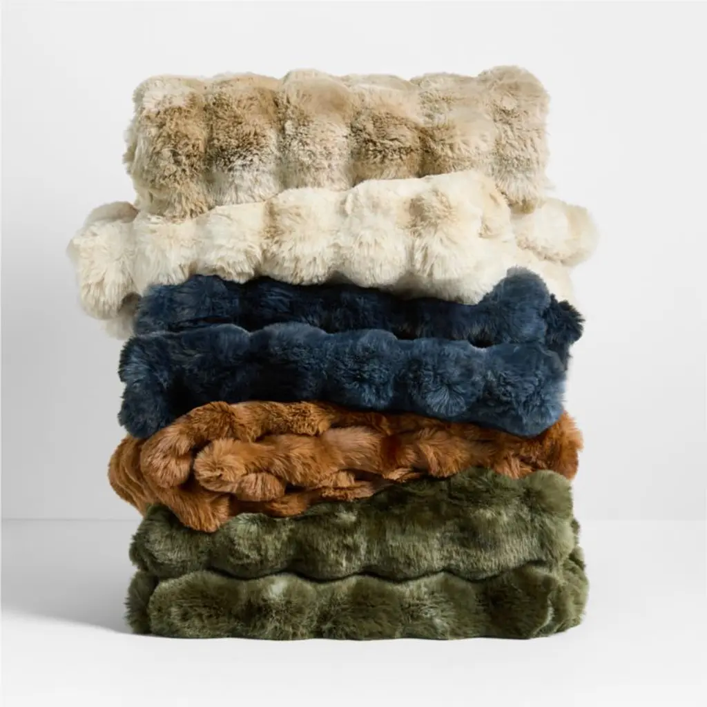 Snuggle up to a faux fur throw as cozy and luxe as the real thing. Crafted of recycled fibers in elevated neutrals, the faux fur is subtly puckered to create a fluffy dimensional texture that's irresistibly soft. We love to layer this exceptional blanket with our faux fur and shearling collections for serious cool-weather snuggling.