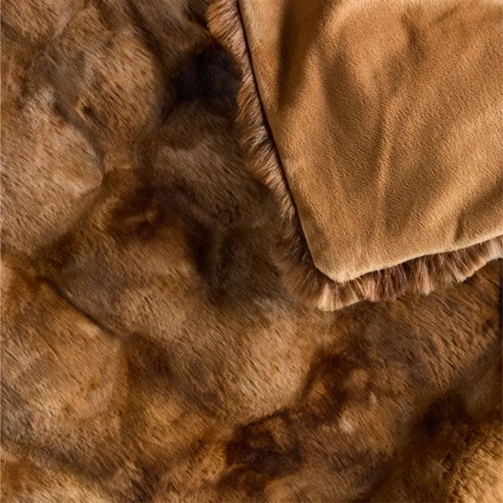 Textured Faux Fur 70"x55" Maple Brown Throw Blanket