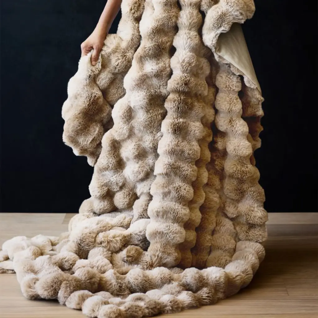 Textured Faux Fur 70"x55" Sierra Tan Throw Blanket