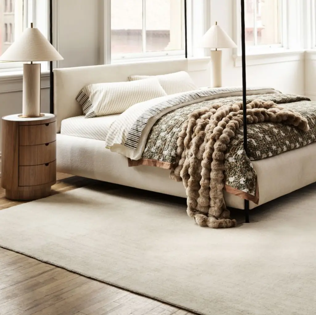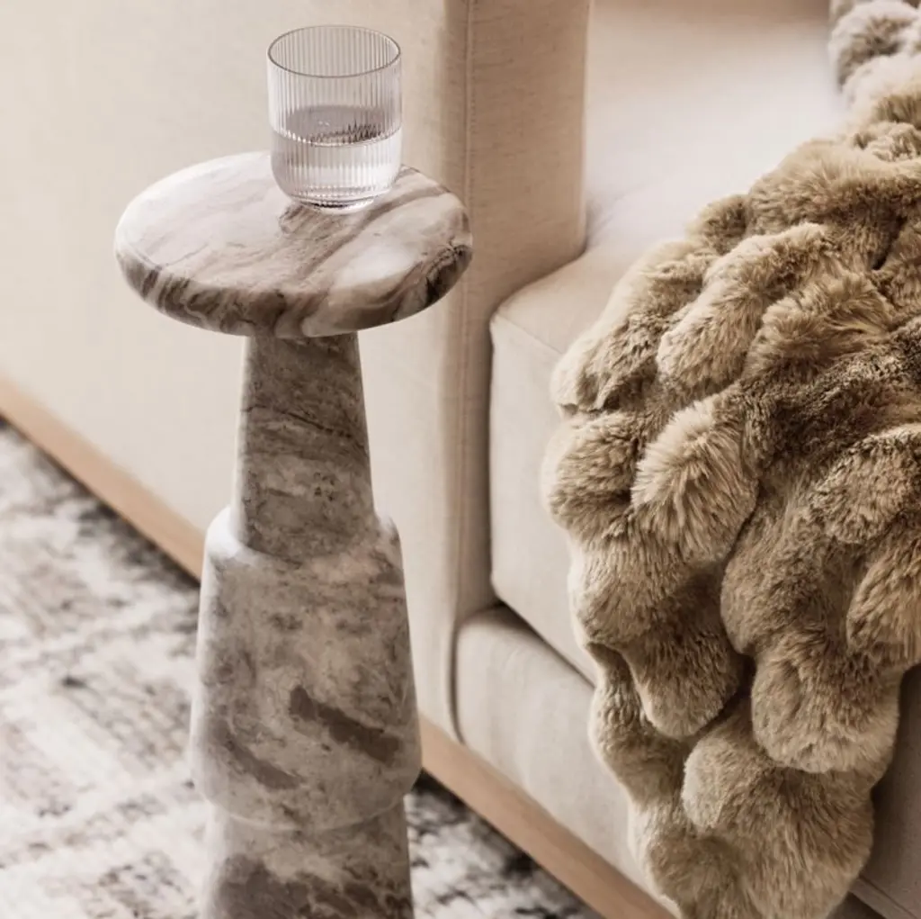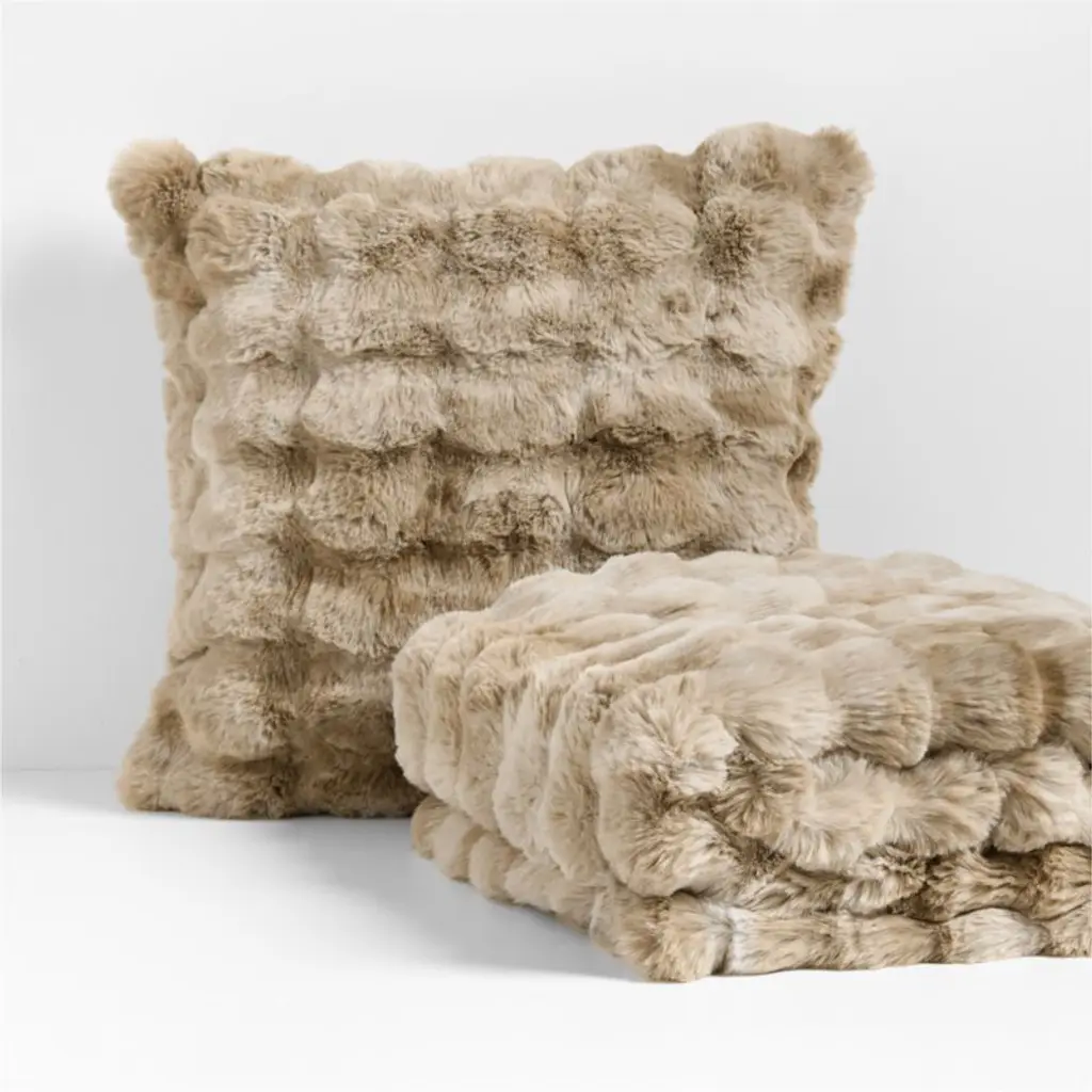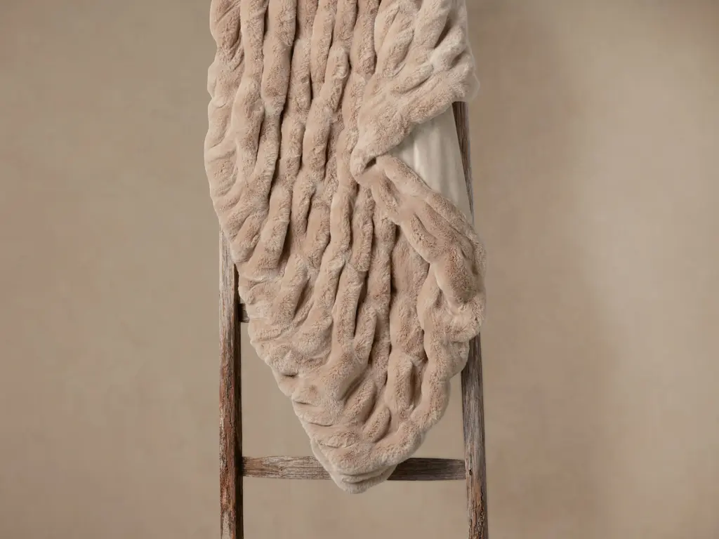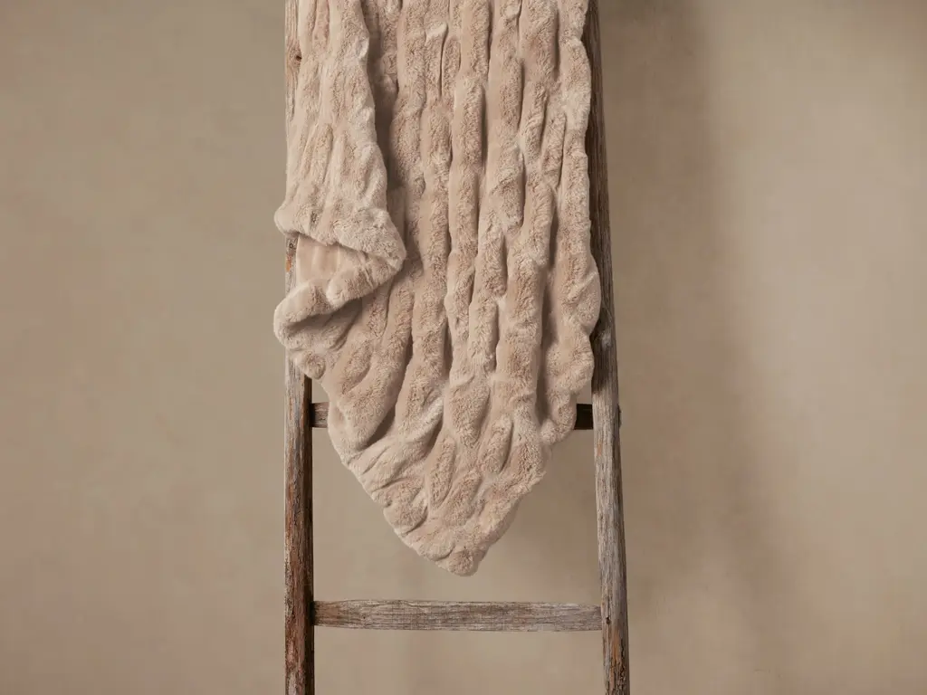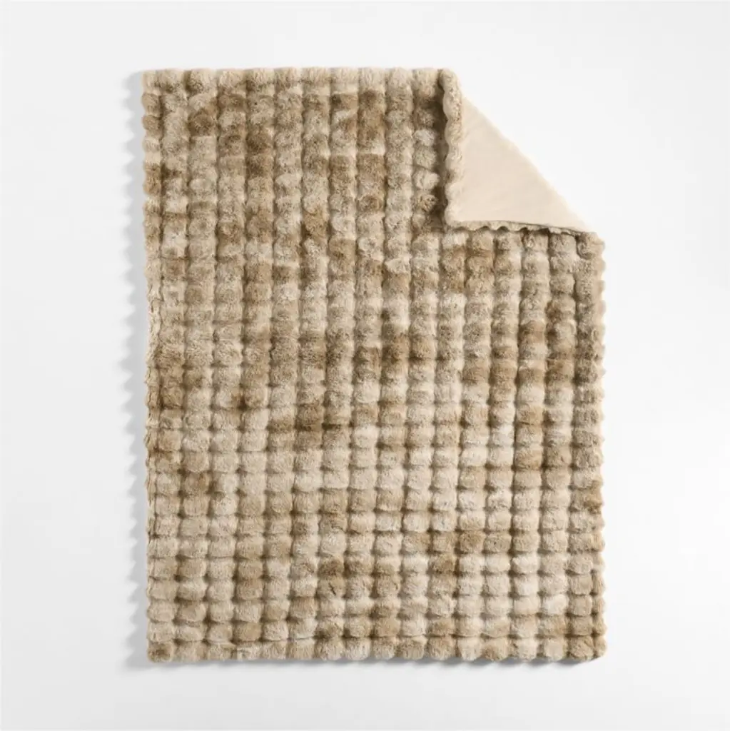 Snuggle up to a faux fur throw as cozy and luxe as the real thing. Crafted of recycled fiber in tonal tans, the faux fur is subtly puckered to create a fluffy dimensional texture that's irresistibly soft. We love to layer this exceptional throw with our faux fur and shearling collections for serious cool-weather snuggling.