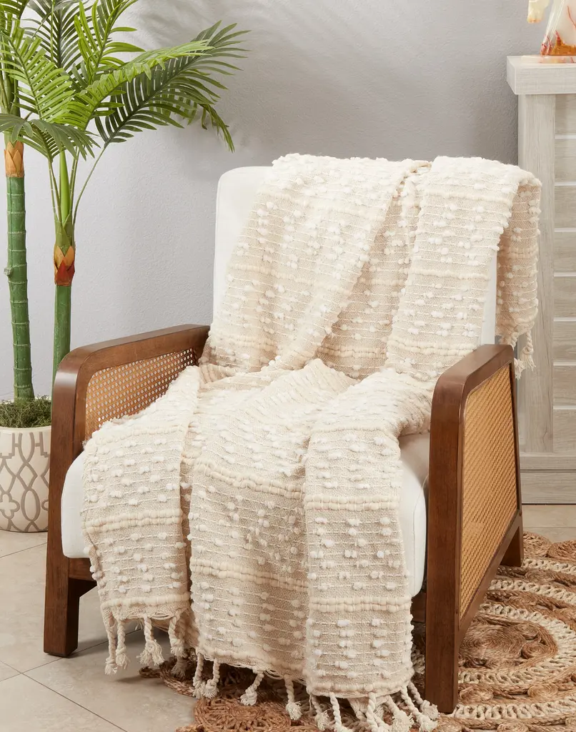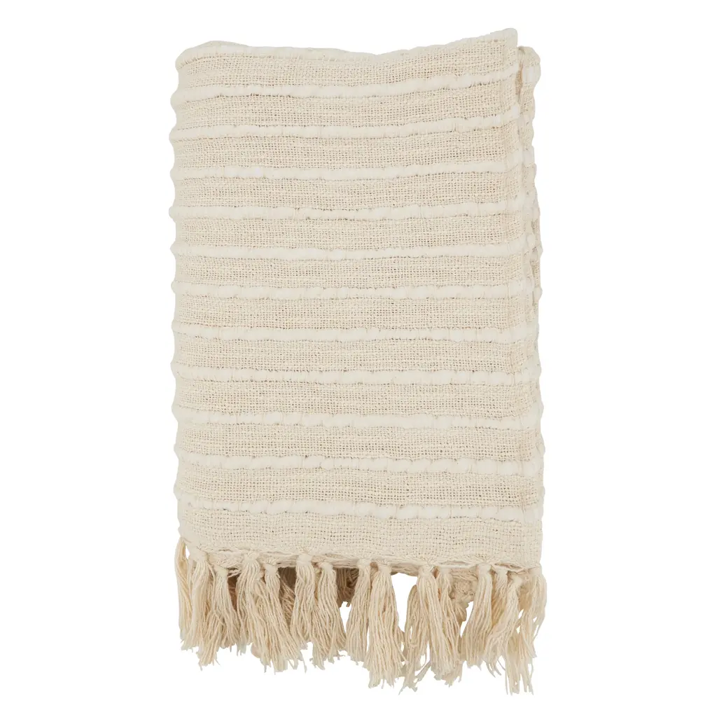 Textured Stripe Woven Fringe Throw Blanket - Ivory