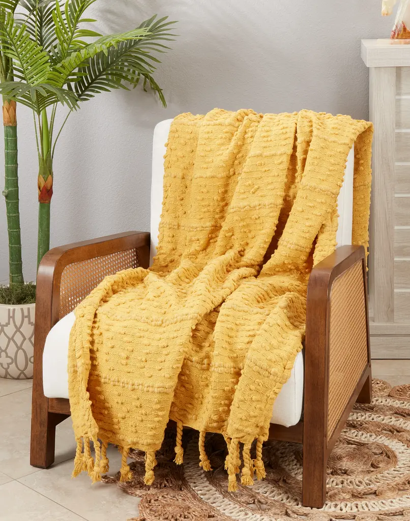 Textured Stripe Woven Fringe Throw Blanket - Mustard