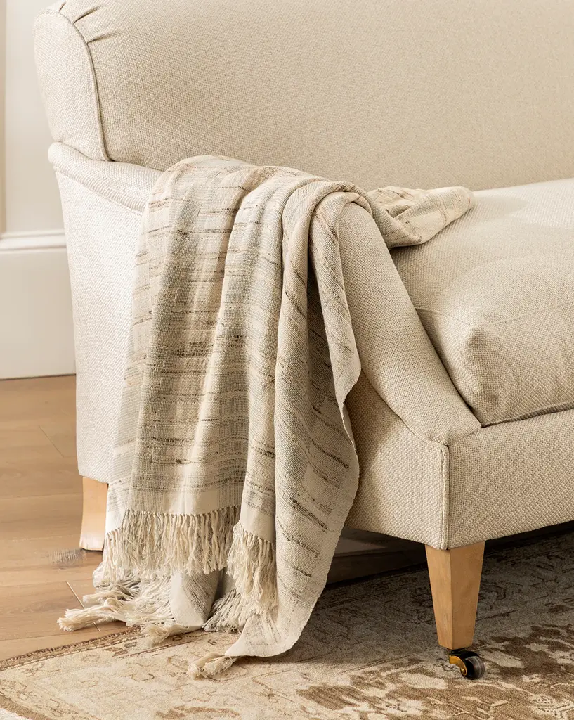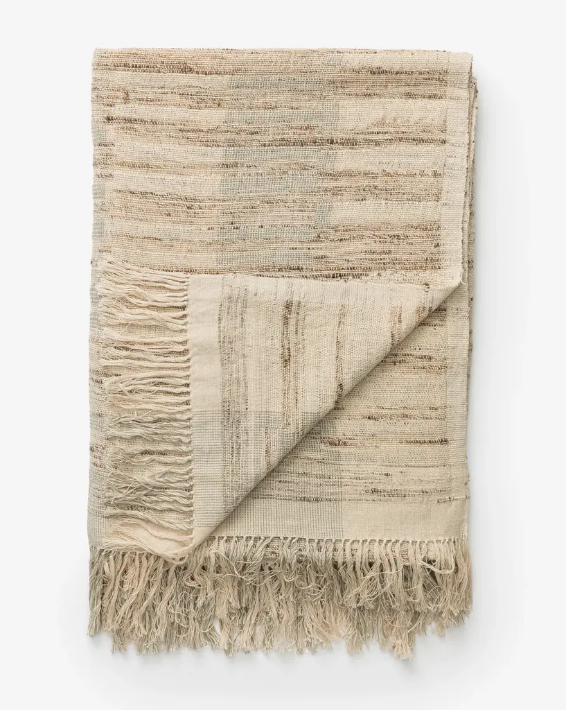 Crafted from a sophisticated blend of cotton and raw silk, this throw is both beautiful and functional. Draped over a sofa for an added layer of texture, its simple color palette of warm and cool tones finishes off your space with an effortlessly cool look and feel.