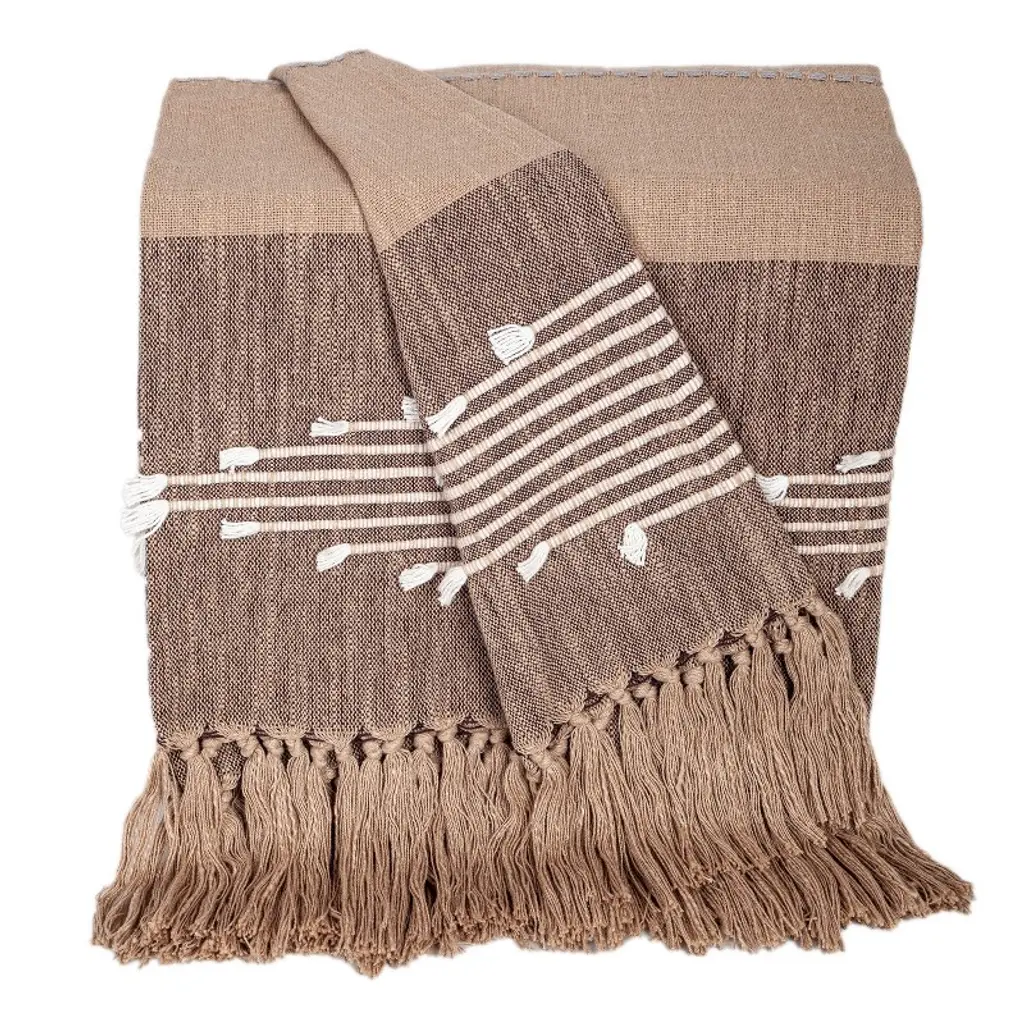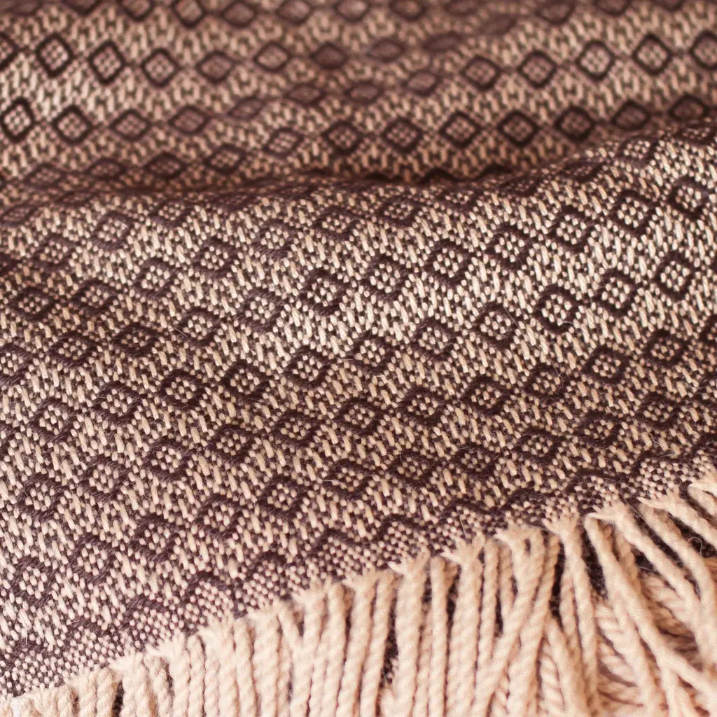 Cozy cocoa and cream tones add spice to cool evenings in an acrylic and alpaca blend throw from Jorge Priori. Finished with fringe, the attractive textile showcases modern Andean style. Renowned for its thermal qualities, alpaca is lightweight yet it possesses an incredible capacity for heat retention.