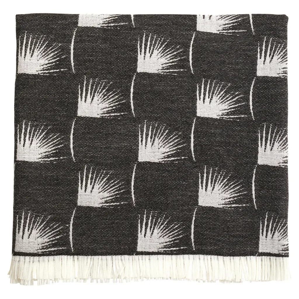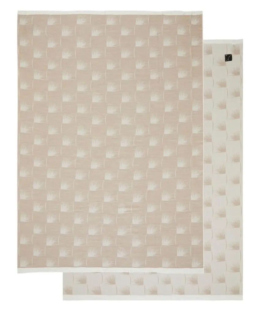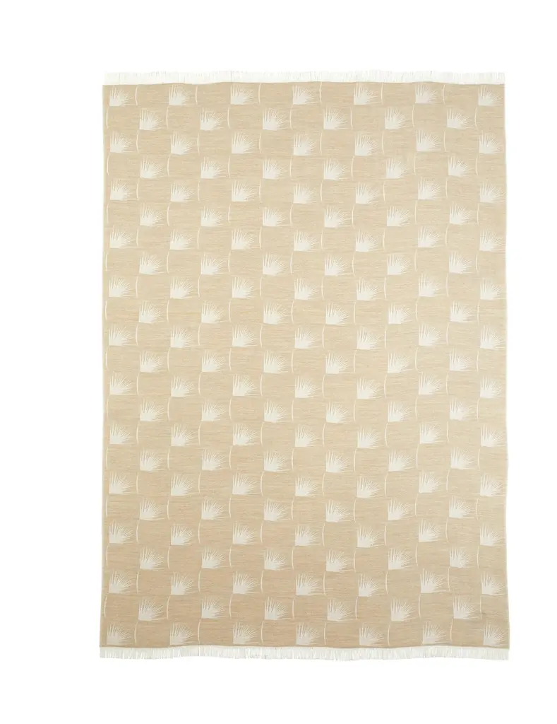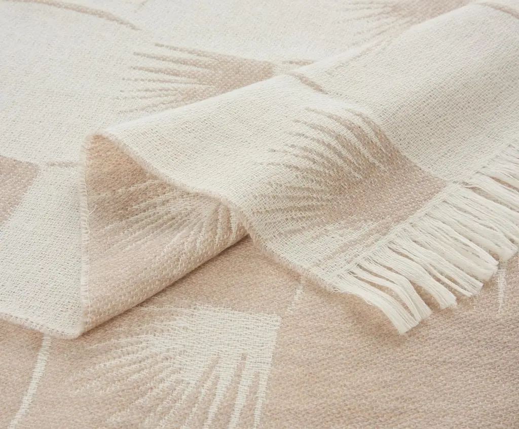 The EDEUM collection is composed of yarn-dyed jacquard throws with plume patterns and short fringes. This throw is a beige colour with a contrasting white pattern that lends an elegance to the piece and reflects the tranquility of nature.