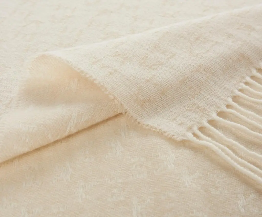 The KOKO collection is composed of yarn-dyed jacquard throws with tone-on-tone fringes and a K三 monogram pattern. This throw is a natural cream colour with a dreamy and sophisticated feel.
