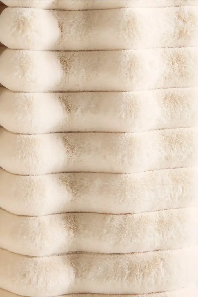This throw blanket combines cozy comfort and chic style, featuring a plush, heavy-weight faux fur with a tipped puffer design.