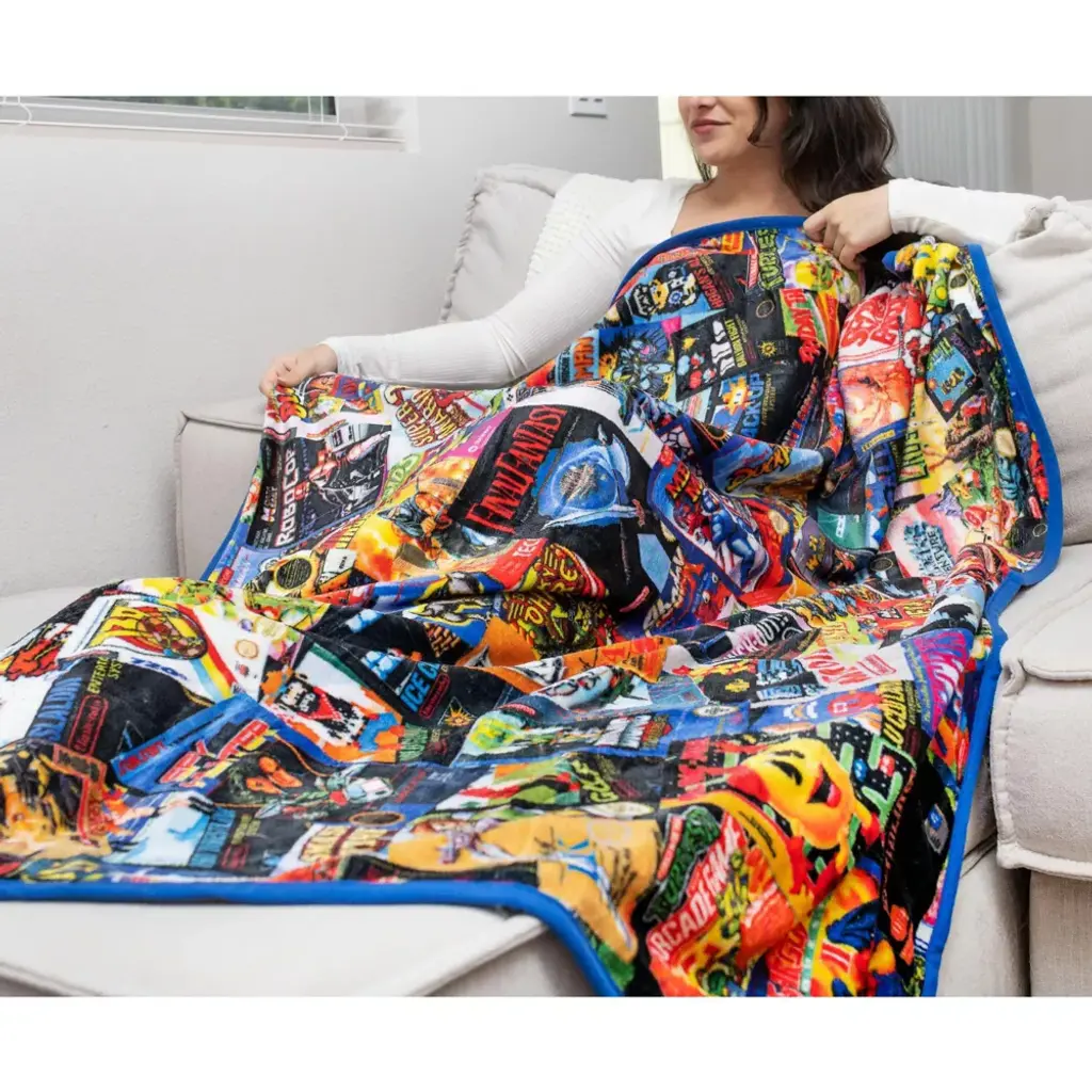 Game on! Show off your love of retro video games with this warm and cozy throw blanket! Featuring a colorful collage of classic video game titles, this fun throw blanket is soft to the touch, made up of 100% polyester material and measures a roomy 45 by 60 inches. Lastly, it's also easy to clean, machine wash with cold water is highly recommended. A Toynk exclusive!
