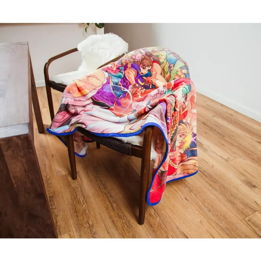 Show off your love of Street Fighter with this warm and cozy throw blanket! Featuring the many fighters of the hit video game series, this fun throw blanket is soft to the touch, made up of 100% polyester material and measures a roomy 45 by 60 inches. Lastly, it's also easy to clean, machine wash with cold water is highly recommended. Officially licensed. A Toynk exclusive!