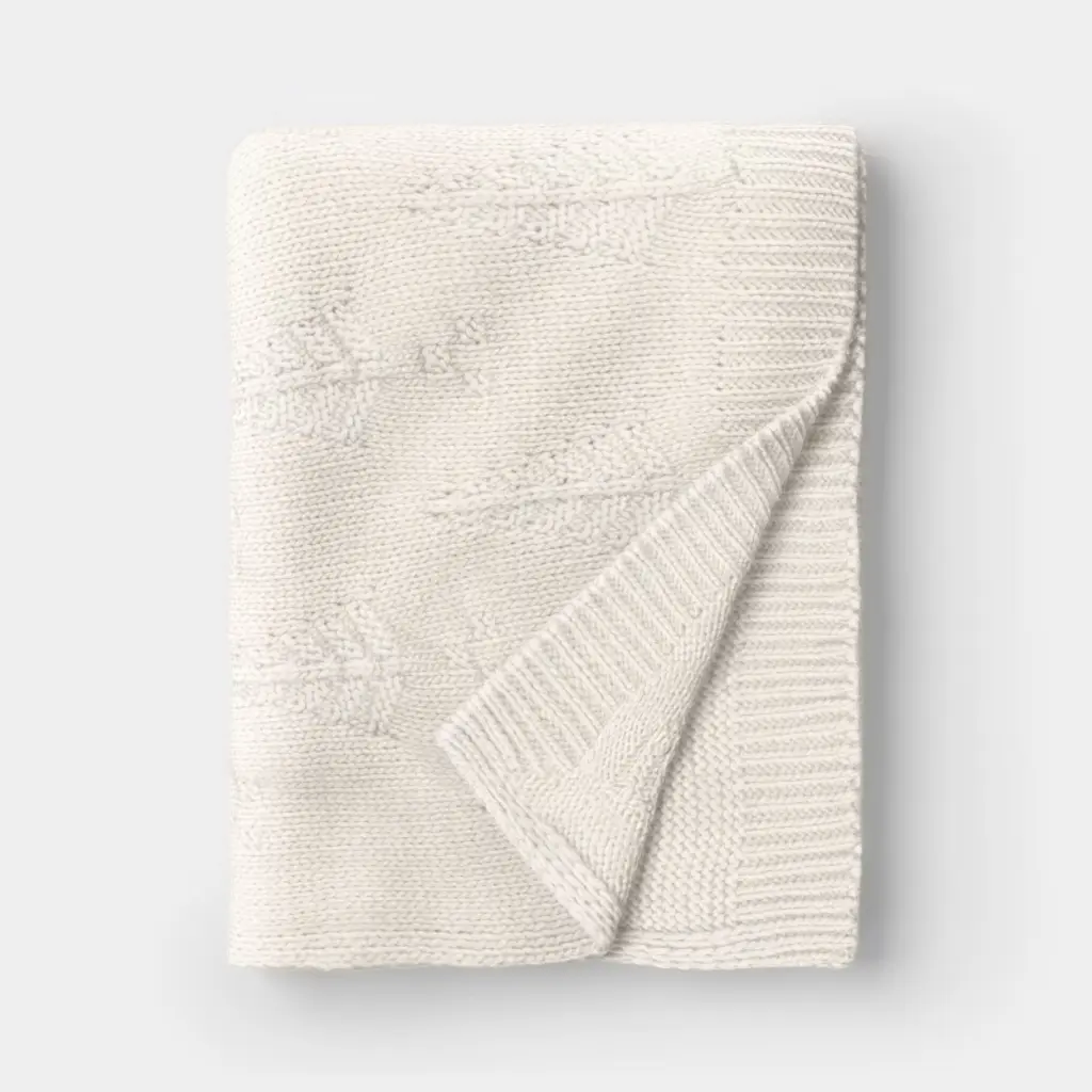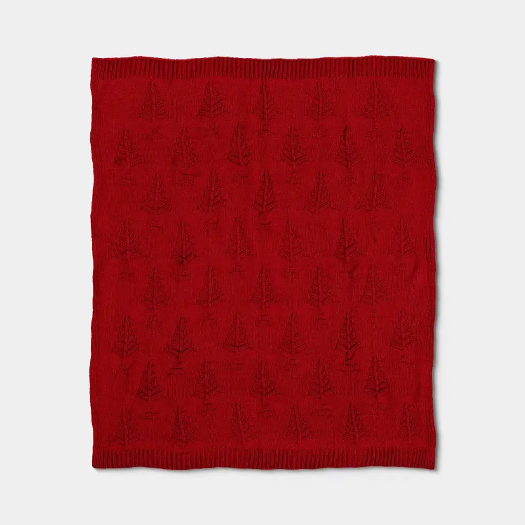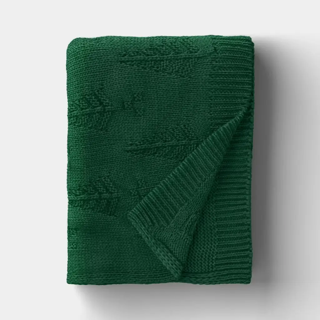 Add holiday magic and warmth to your decor with this Tree Knit Throw Blanket from Threshold™. This rectangular throw blanket has a jacquard sweater-knit design adorned with Christmas trees for a celebratory look and is finished with ribbed ends. Made from a recycled polyester-acrylic blend, the midweight throw blanket is also machine washable for effortless cleaning.Threshold™: Looks like home, feels like you.