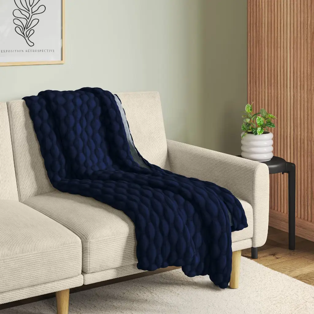 Triple Knit Throw Blanket Heathered Navy Blue - Room Essentials™