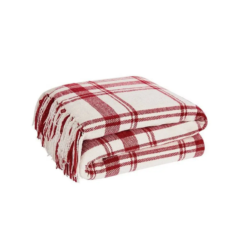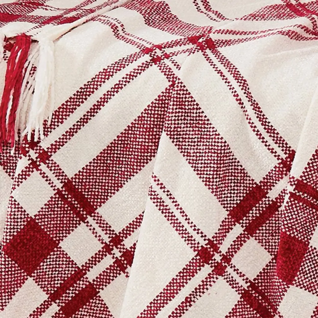 Truly Soft 50"x70" Plaid Chenille Red/ivory Throw Blanket