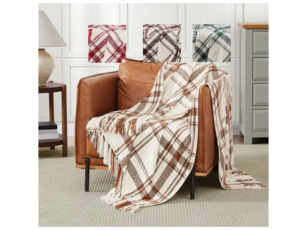 Experience the luxurious softness of our plaid blanket, crafted from 100% Polyester Chenille. This exquisite material offers a wool-like feel, while the high-quality acrylic fabric ensures superior warmth, stretchability, and breathability. The blanket's classic dusty pumpkin orange hue adds a stylish touch, complemented by the twisted macrame edge that brings a vintage farmhouse charm to any space. Measuring 50 x 70 inches, this lightweight throw blanket is versatile enough to use as an outdoor shawl or scarf. Drape it over your bed or couch for a perfect home decoration, or wrap yourself in its cozy warmth while watching movies, traveling, or working in an air-conditioned office. For easy care, the blanket is machine washable. Simply wash it separately in cold water on a gentle cycle. Rest assured, this blanket is made responsibly and holds the OEKO-TEX Standard 100 Certification. Ideal for use as a holiday throw blanket or a thoughtful gift blanket, this soft plaid throw will be a cherished addition to any home.