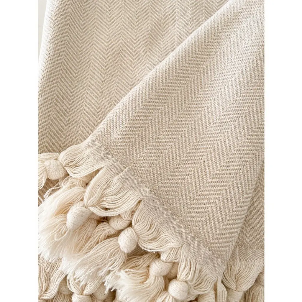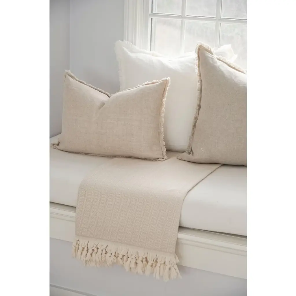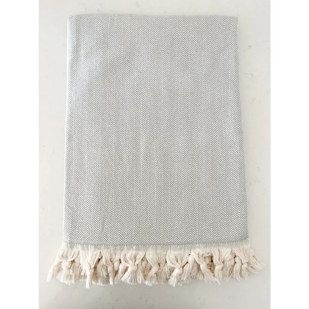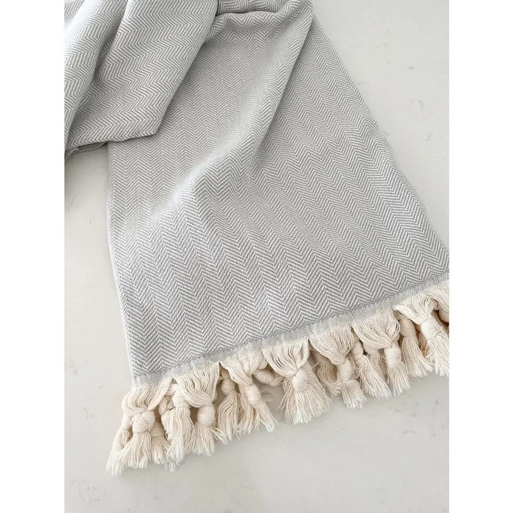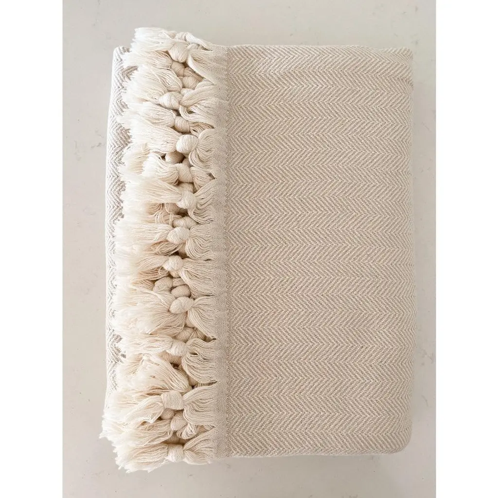 The Turkish Cotton Herringbone Throw with Tassels is made with soft cotton which is naturally breathable. The classic herringbone pattern is made with yarns. This blanket will style effortlessly from season to season and is finished with a self knotted fringe.Color: Beige, Grey, Navy Blue, Pink.Color Details: Beige & Ivory, Grey & Ivory, Navy Blue & Ivory, Pink & Ivory.Dimensions: 55"x75" Material: 100% CottonMade in Turkey.Machine Wash delicate with like colors, Hang to Dry, Low iron.