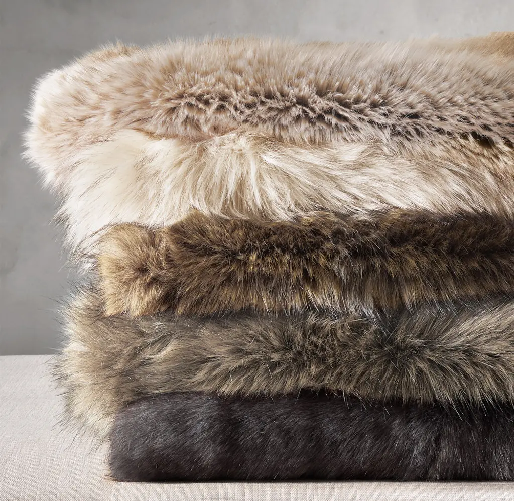 FREE SHIPPING Exceptionally realistic, our premium faux fur throw is exquisite to the eye and irresistible to the touch. The long, ultra-fine yarns are artfully shaded to create authentic depths of color, and the luxuriant pile offers cozy weight and enveloping warmth.
