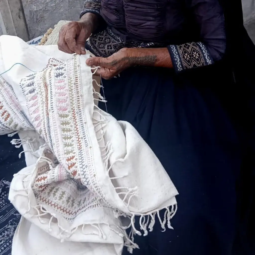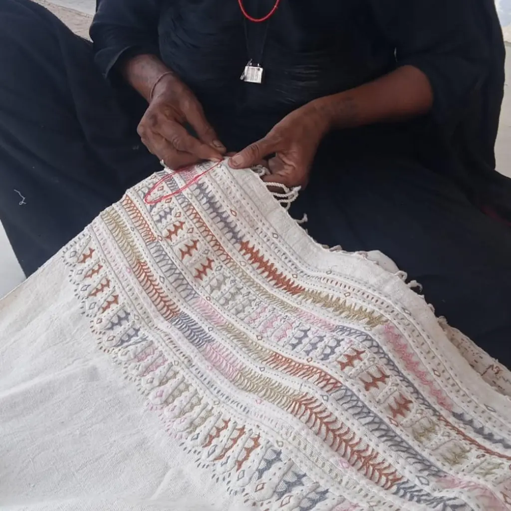 Unah is a fully embroidered throw, with one of a kind beautiful handwork highlighting the borders in colorful tones. Behind this piece is a unique group of artisan women in India. This particular technique is unique only to this particular cluster set in a small remote village in western India. Each piece provides ethical livelihood to the entire cluster as they create these artistic renditions on textiles, rooted in their heritage. The fringes are neatly hand rolled by our artisans. Each piece is developed in complete collaboration of the artisan women who co create this together. Completely hand made, each piece is extremely unique and it takes few weeks to develop one single piece. Classic in design, this timeless throw / blanket makes a thoughtful unique gift, also enhancing interior spaces and supporting artisan communities ethically.Size: 83" x 43" (210 cm x 110 cm) Material: 100 % rain fed organic cotton from India.Colors: Embroidery in shades of orange, haze green, brown.Artisan base: Ethically handwoven by master artisans in IndiaWash care: Gently hand wash with cold water and hang dry or delicately dry clean only.What Makes Your Purchase Sustainable ?- Support employment of cluster of women artisans & farmers.- Supporting local small farms that cultivate indigenous organic cotton.- Low carbon foot print as the cotton is 100% rain-fed.- 100% handmade manufacturing process by artisans.- Use only 100% natural + biodegradable responsibly sourced materials.- Small batch production ensures higher quality less wastage.- Each product comes in reusable cotton pouches also made by our artisans.