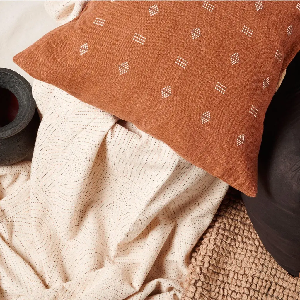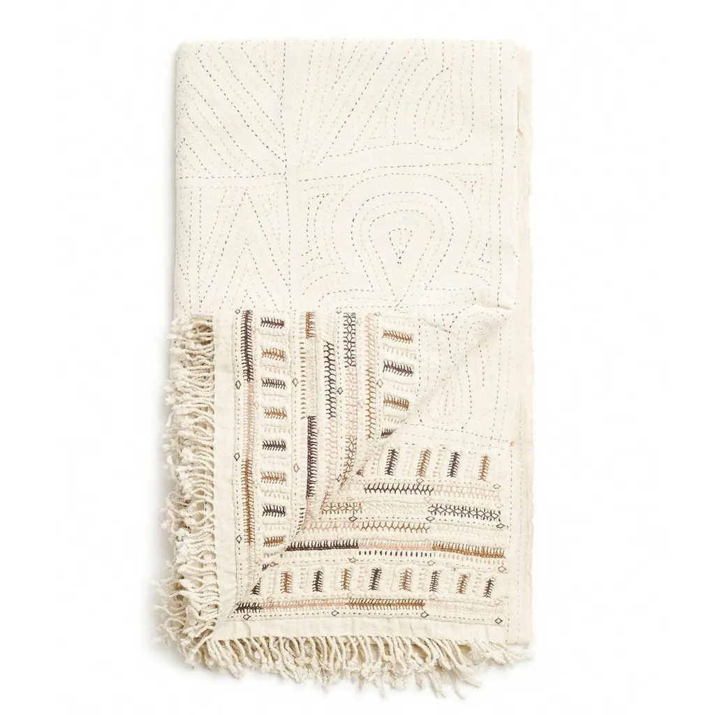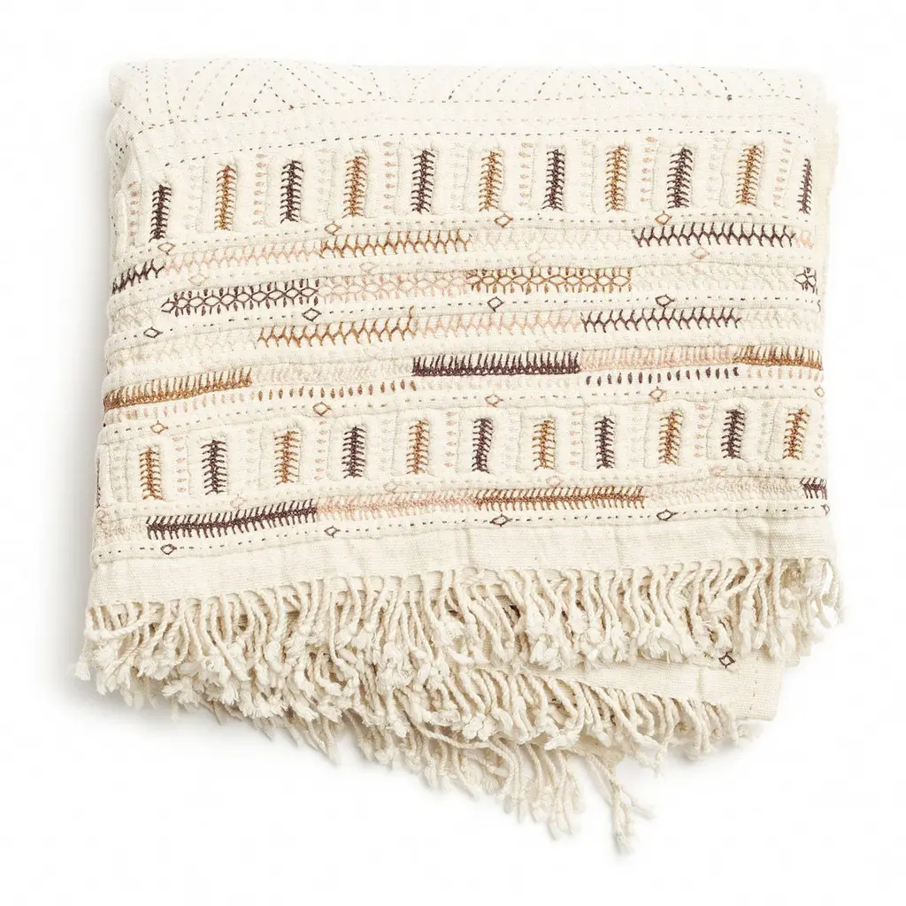 Unah Artisanal Brown Throw In Organic Cotton All Over Hand Embroidered