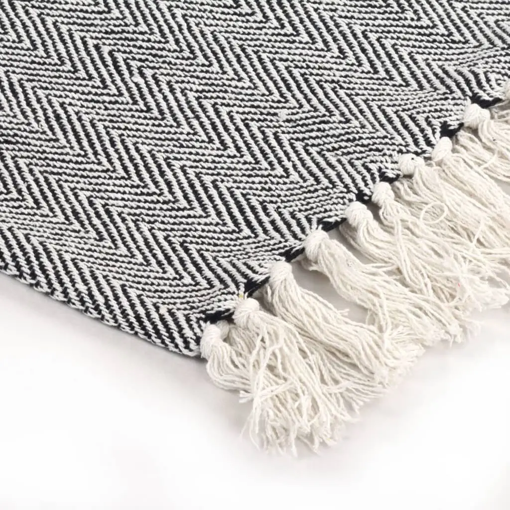 This Navy Blue Cotton Herringbone Throw is all about comfort and style, adding a touch of elegance to your living space. With its fab woven texture, it looks good and keeps you warm, making it great for curling up on your sofa or sprucing up your bedroom. Soft Touch Material: Made from 100% cotton, this throw blanket feels super soft against your skin. Perfect for wrapping up on chilly evenings, it offers cozy comfort every time.Decorative Tassels: The stylish tassels on the edges give the blanket an extra decorative touch, making it a great fit for lots of interior designs. This lovely feature really boosts its look, letting it blend in with your current decor.Machine Washable: Cleaning is a breeze with this cotton throw, as it can be tossed in the washer at up to 104°F. Just pop it in when needed to keep it looking fresh and new.Versatile Design: Best for indoor use, this throw can be draped over beds, sofas, or chairs for some added warmth and style. It works well in different rooms, from your comfy living room to peaceful bedrooms, fitting right into your lifestyle.Generous Size: Measuring a roomy 49.2 x 59.1 in, this throw gives you ample coverage for wrapping or cuddling, making it perfect for all your comfort needs, whether on your own or sharing with others.
