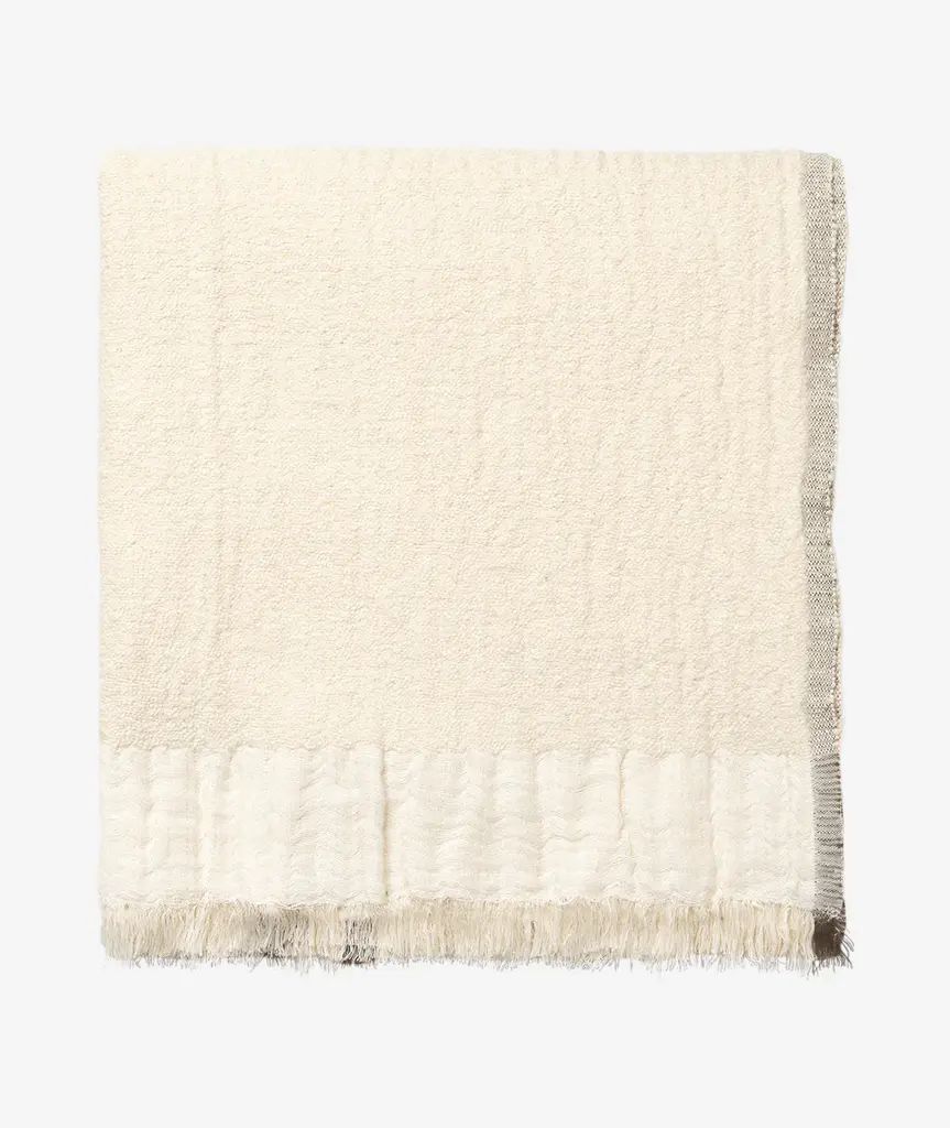 Create an ambiance of calm and cosiness with the Weaver Throw. Handwoven from a blend of linen, wool and cotton, the blanket has an artfully irregular surface and a delicate selvedge edge adorned with fine fringe. Whether draped over your sofa for moments of tranquillity or elegantly spread across your bed as a bedspread, the Weaver Throw adds a touch of refinement to any setting.