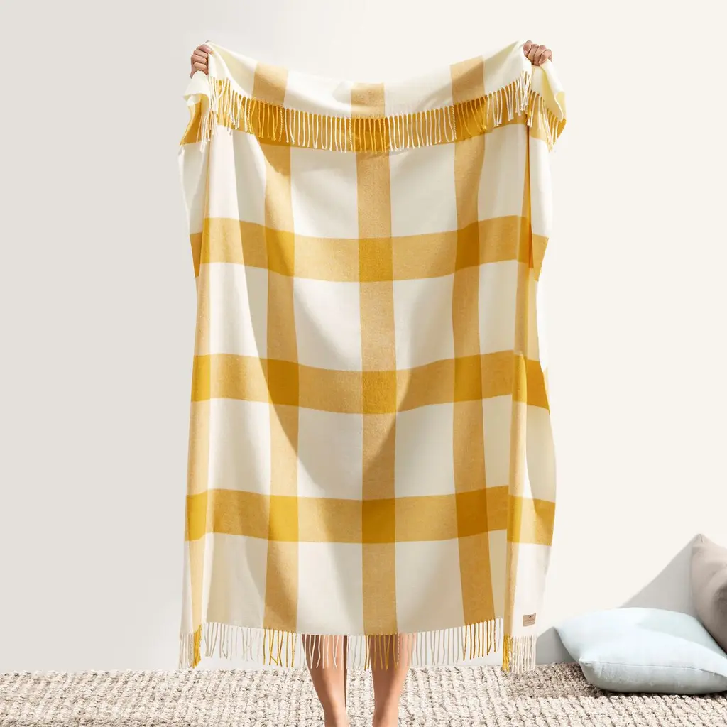 Crafted in Italy, this cashmere-soft plaid throw is accented with lush fringe. It's ideal for draping over a sofa, folding at the foot of the bed, or tossing over your shoulders on a chilly evening or in an overly air-conditioned space.