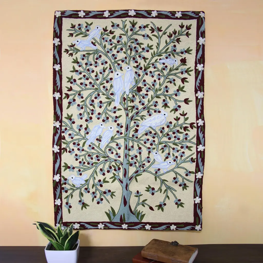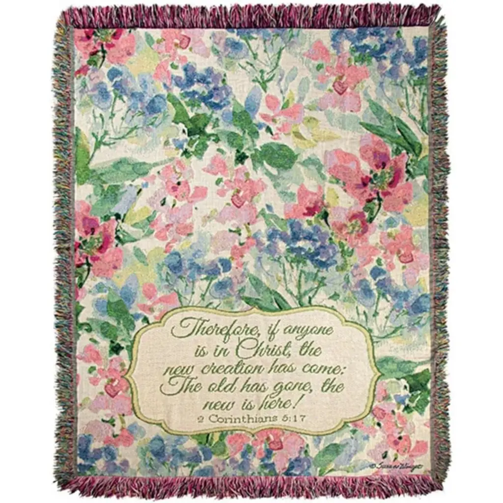 Woven tapestry throw with fringeGenerously sized: 50 x 60-Inch, cover a bed, drape over a couch or adorn a comfy chairFloral design with sentiment: Under His wings you will find refugeMade in the USA from an image created by American Artist Lena LiuSearch Manual Woodworkers for matching pillows and other decor items