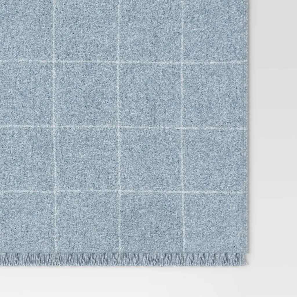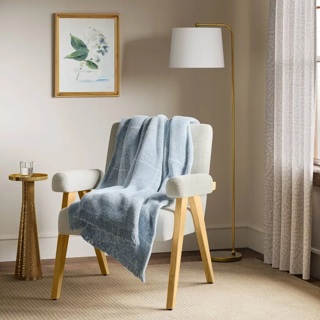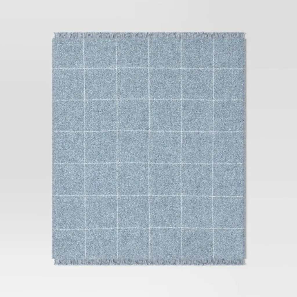 Wrap yourself in plush comfort with this Windowpane Boucle Throw Blanket from Threshold™. Made from recycled polyester woven material, this boucle throw blanket envelops you in pure, soft comfort whether you're enjoying a quick nap or relaxing on the couch. The cream throw blanket boast a blue windowpane pattern with fringe detailing on the edges for a cool look that blends effortlessly with any decor style or color palette. Threshold™: Looks like home, feels like you.