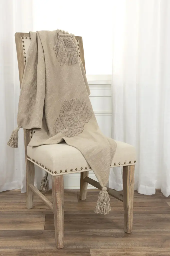 With intricate hand-tufted detailing, this gorgeous throw is the epitome of refined boho chic style, woven using slubbed yarns for a textured, transitional ikat design. In a rich coral hue, this piece will add a pop of color to any décor, with the added benefit of ultra comfort. The warp yarns are hand-tied into tassels, adding a finishing element of refined texture and warmth. This medium to heavy-weight throw is specially washed for extra softness, perfect for snuggling on chilly evenings. Add an air of sophistication and coziness to your living room, bedroom, or outdoor space with this hand-crafted, high-quality throw. This 50" x 60" textured cotton throw is not only functional, but features a stunning design in beautiful coral.